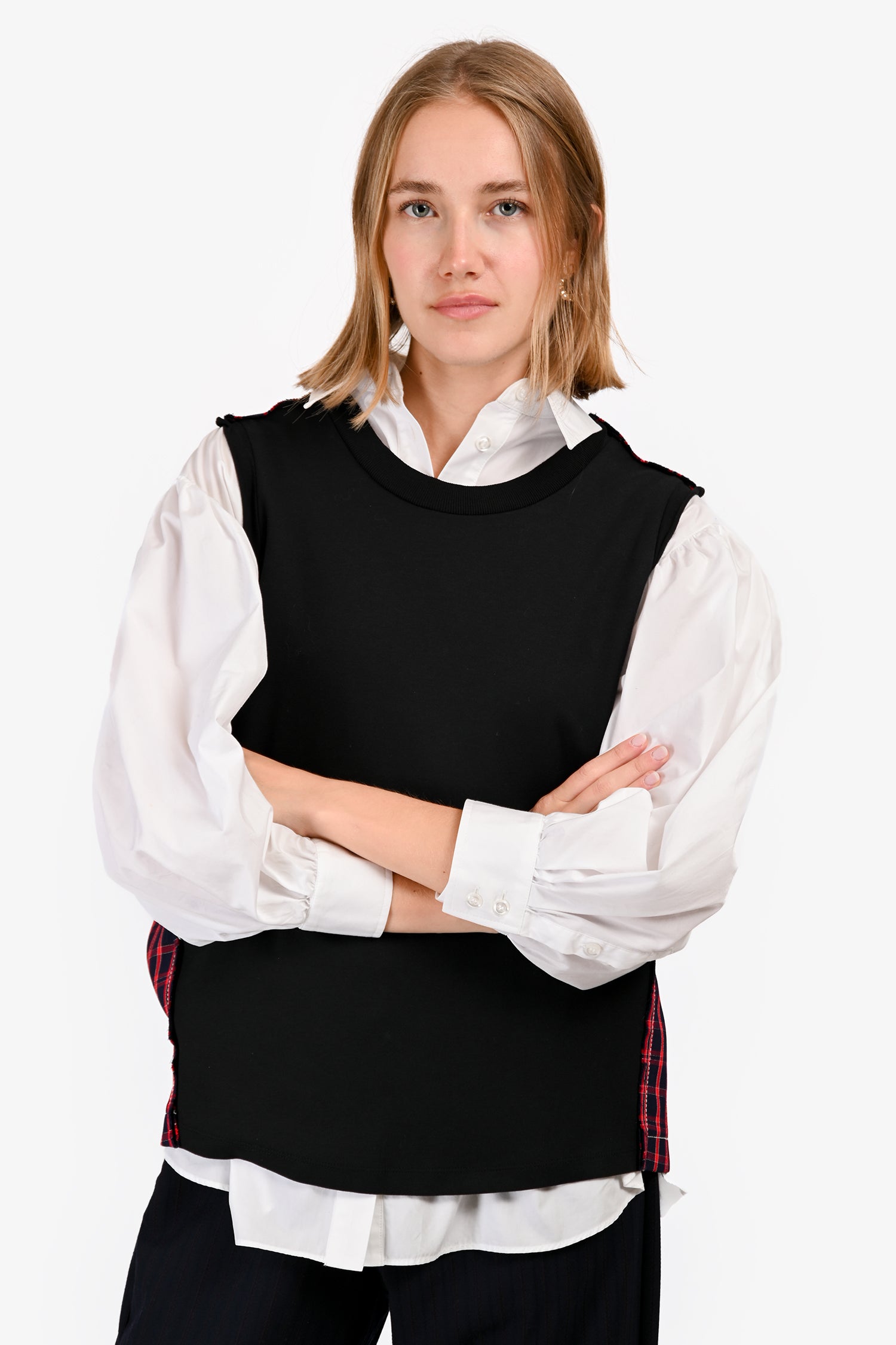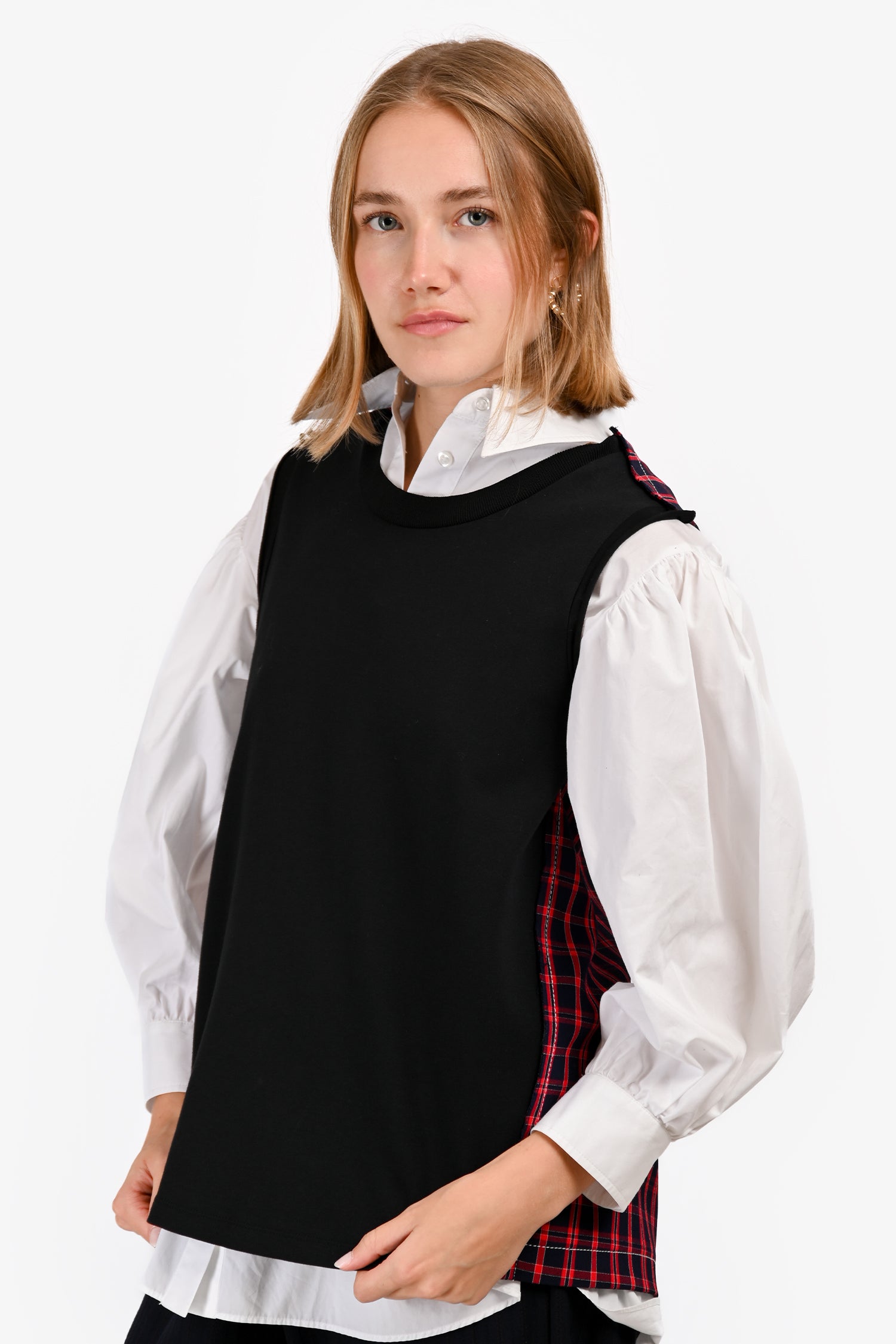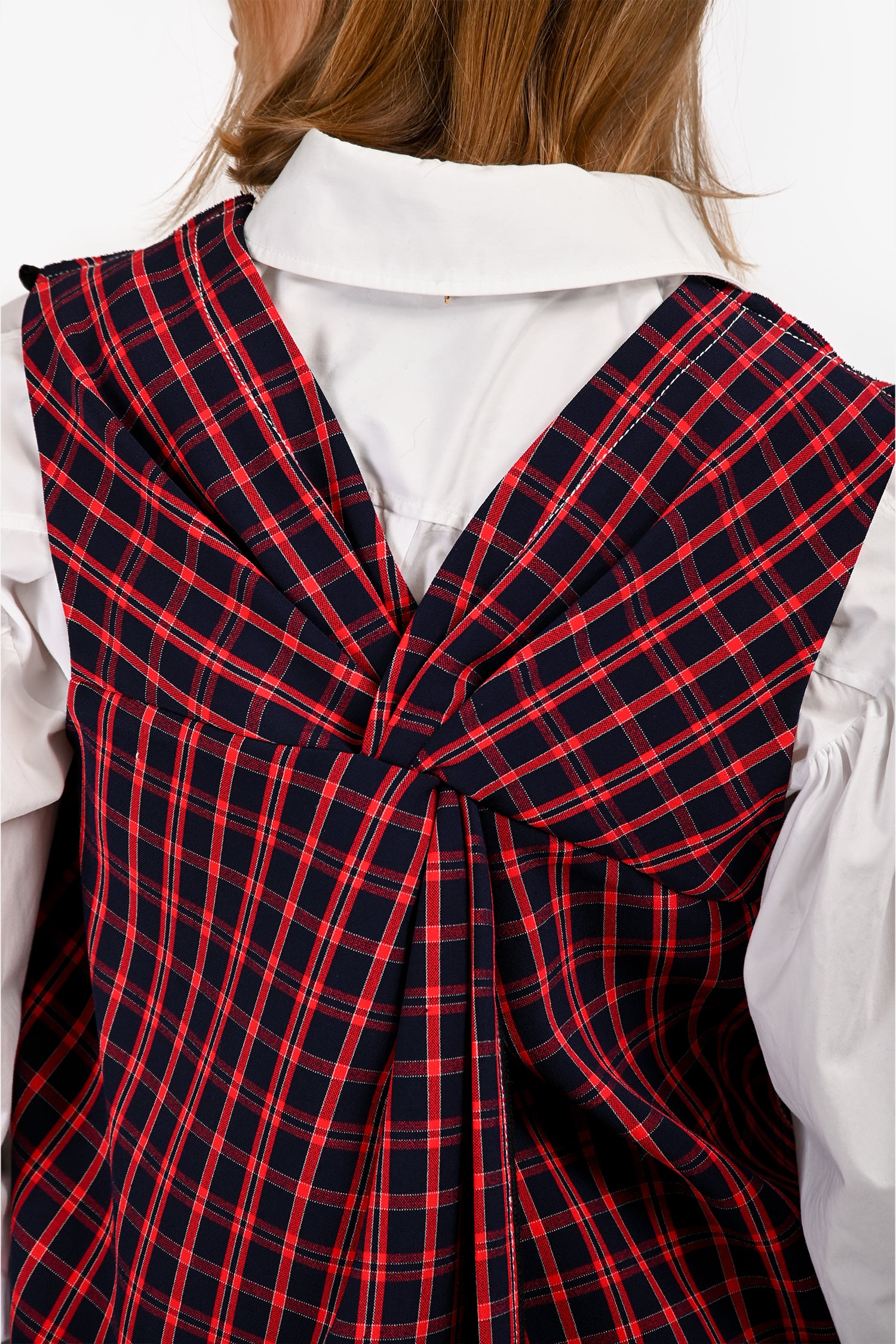 Refresh availability3.1 Phillip Lim Red Black Tartan Sleeveless Top. Pull-on. V-neckline. Rear centre knot design. Front centre slit. Contrast and tonal stitching.