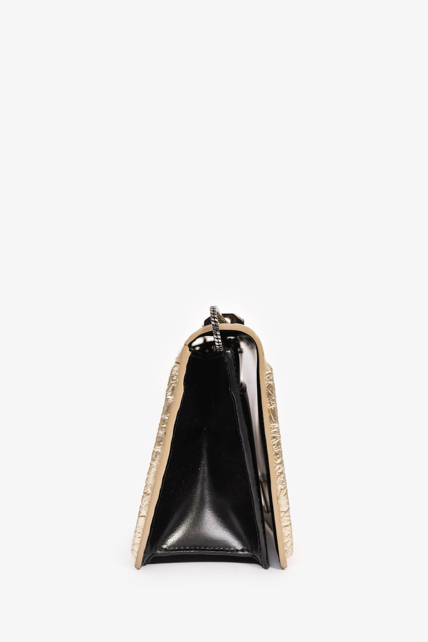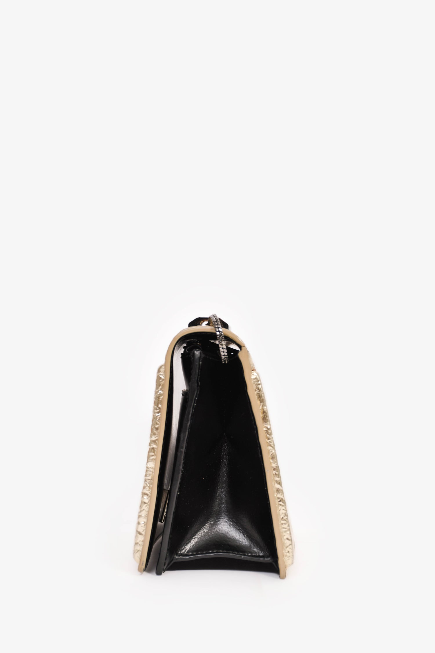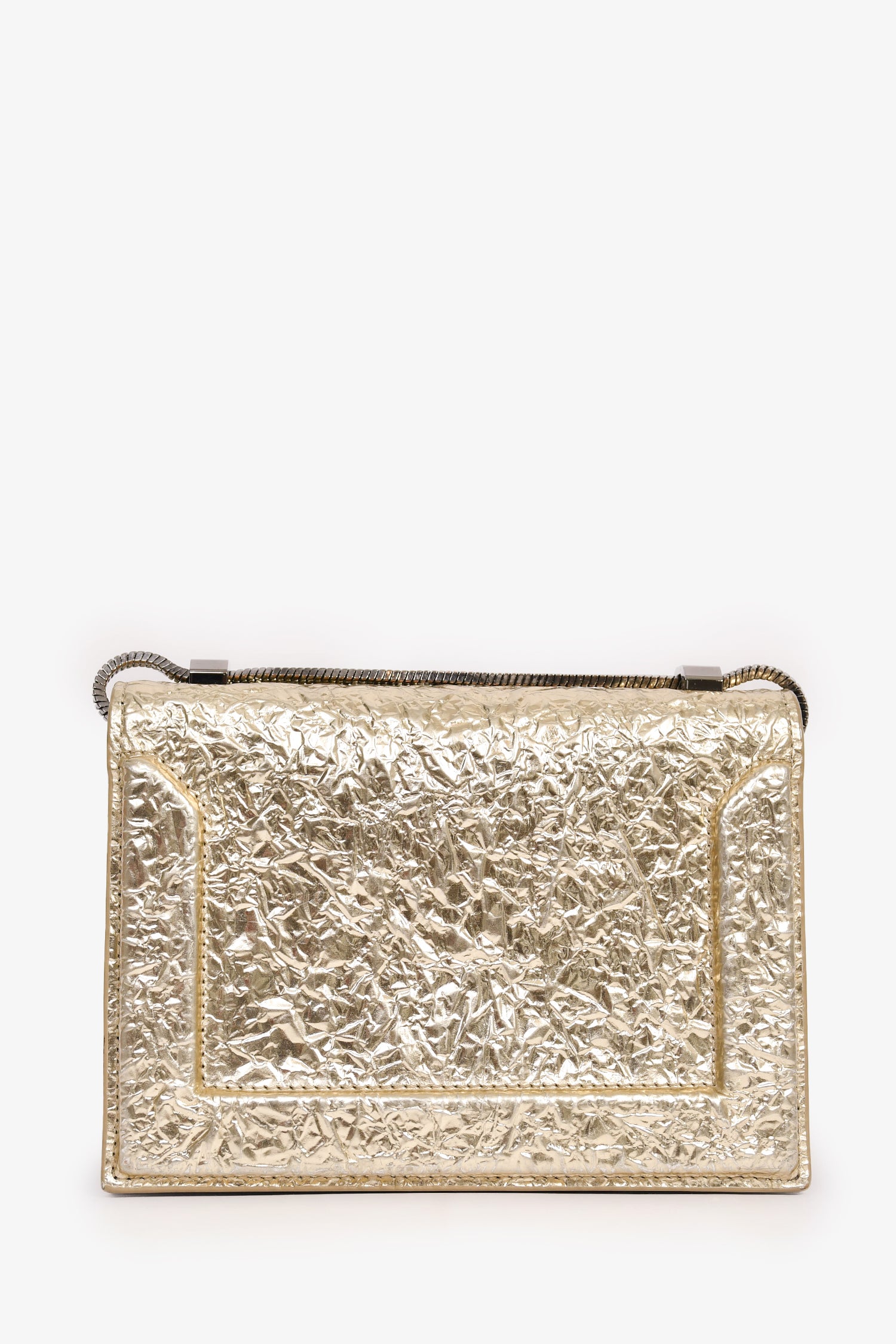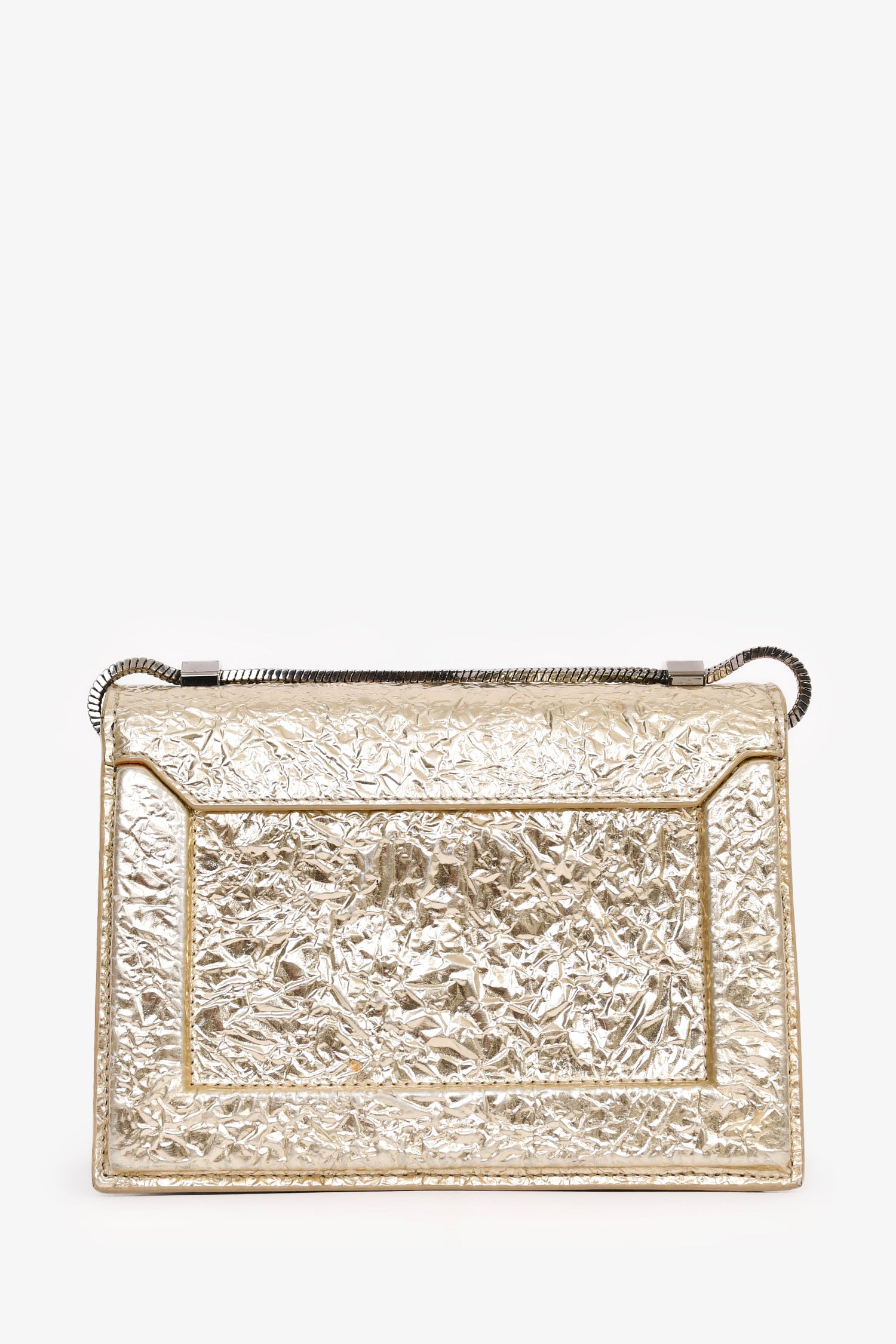 Refresh availability3.1 Phillip Lim Gold Crackle Leather Chain Shoulder Bag. Silver-tone hardware. Chain-link shoulder strap. Fold-over strap with a pull-through closure. Leather sides. 3 compartments. 1 zipped compartment. 6 card slots. Tonal stitching.