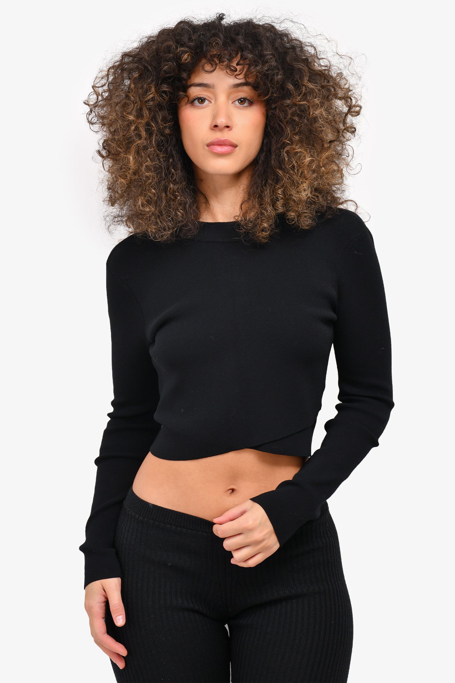 Refresh availabilityA.L.C Black Crewneck Crop Sweater. Ribbed collar, hem and sleeves. Tonal stitching.