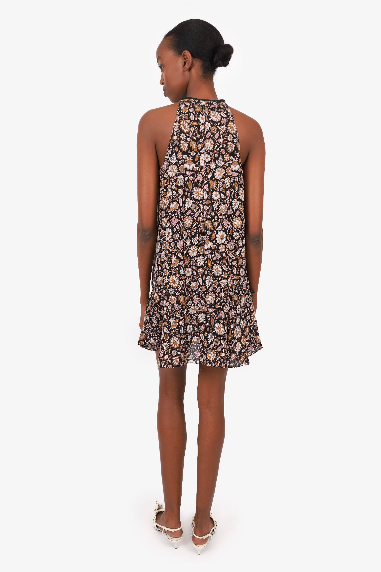 Refresh availabilityA.L.C. Black/Multicolour Silk Tassel Tie Crepe Floral Mini Dress. Self-tie rope tassel strings at collar. Slight pleating at chest. Black lining. Tonal stitching.