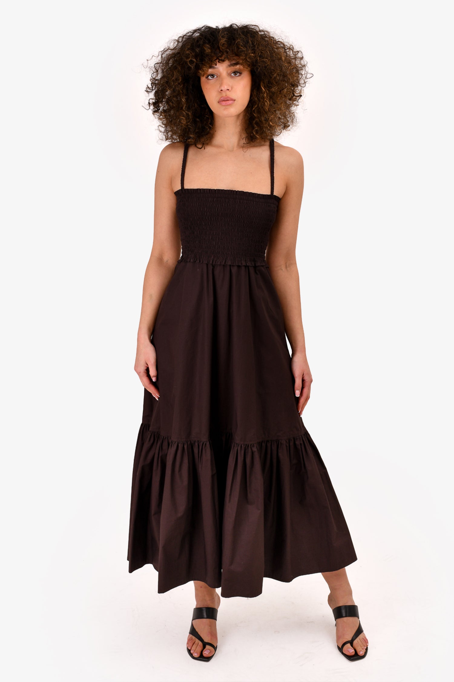 Refresh availabilityA.L.C. Brown Smocked Sleeveless Midi Dress. Pull-on. Adjustable straps.