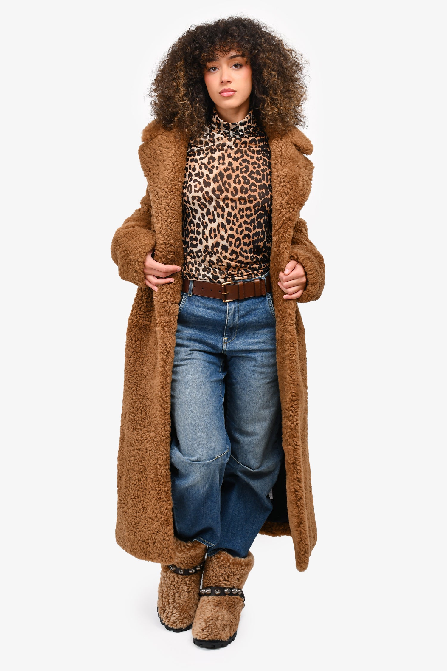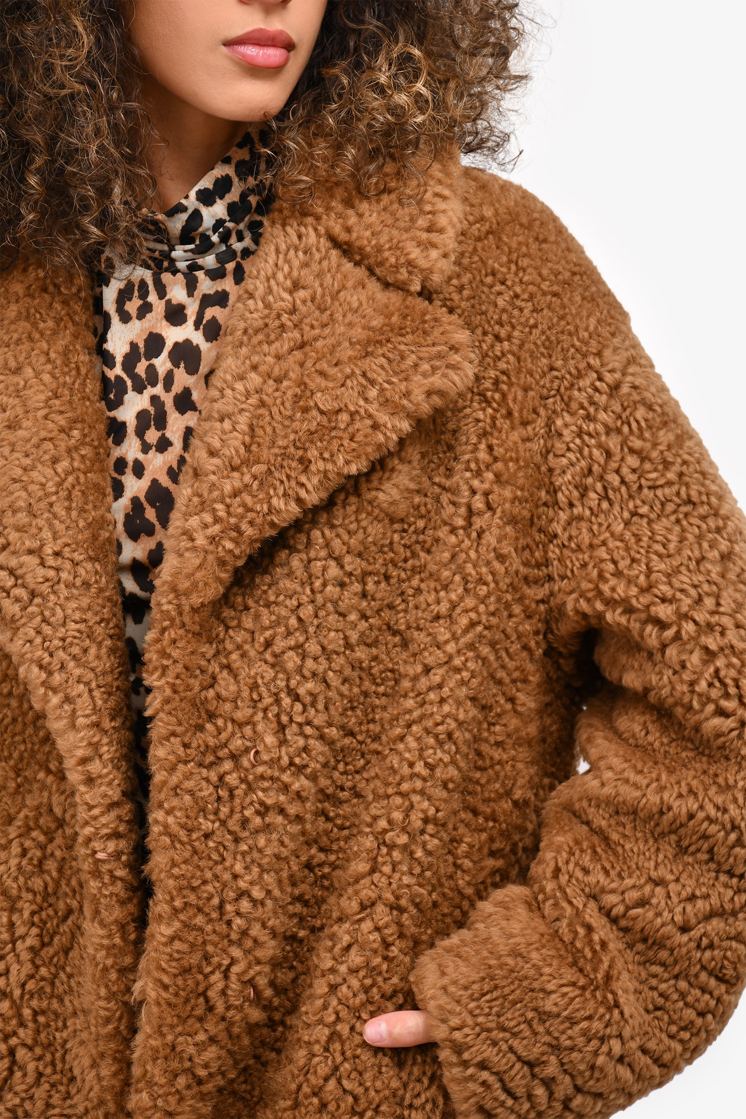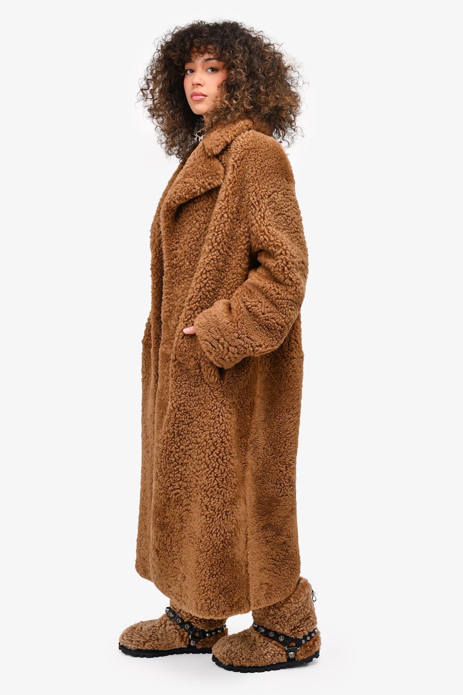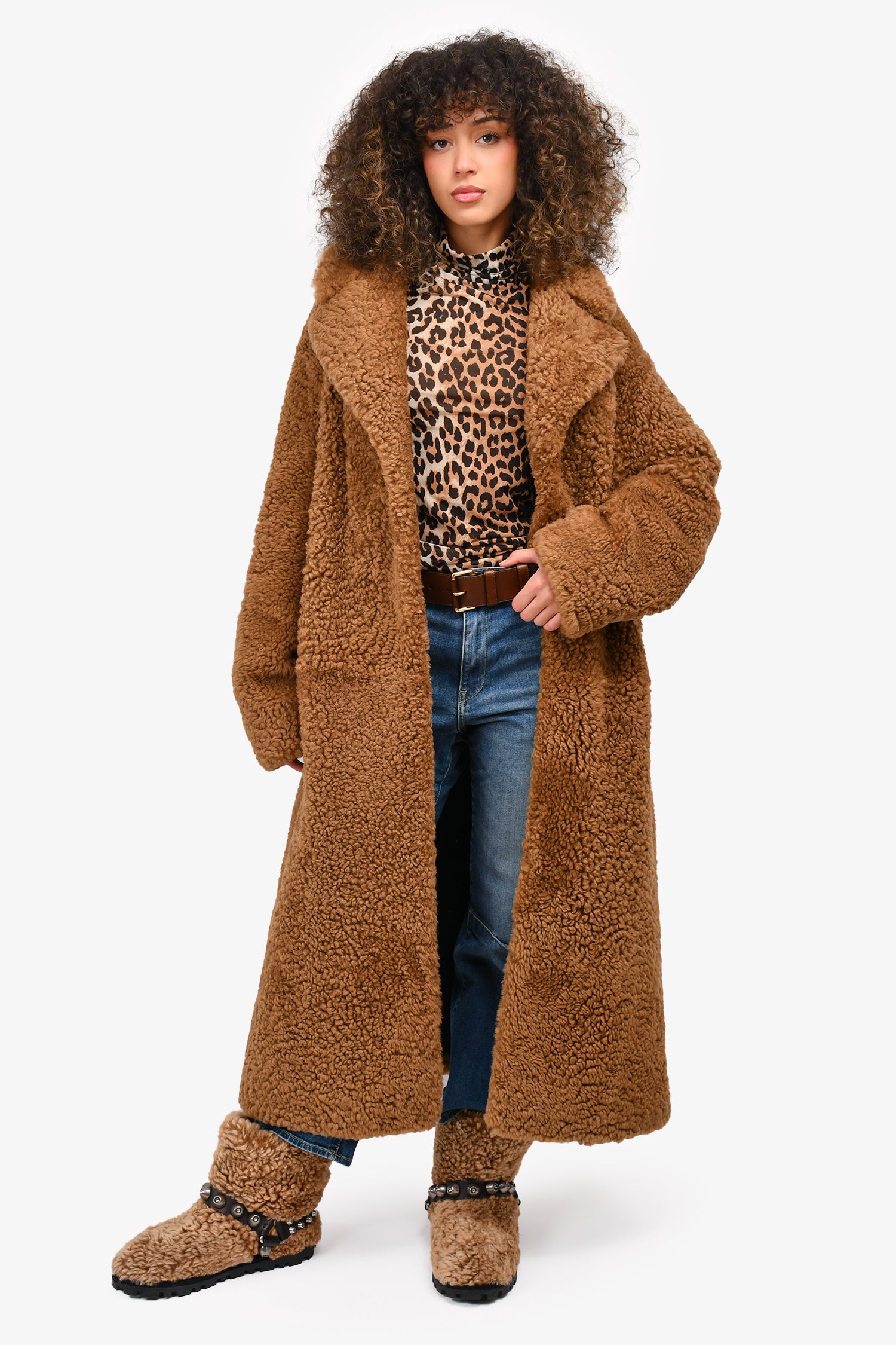 Refresh availabilityA.L.C. Brown Shearling Wrap Coat. Front hook and loop closure. Front side pockets. Lined. Tonal stitching.
