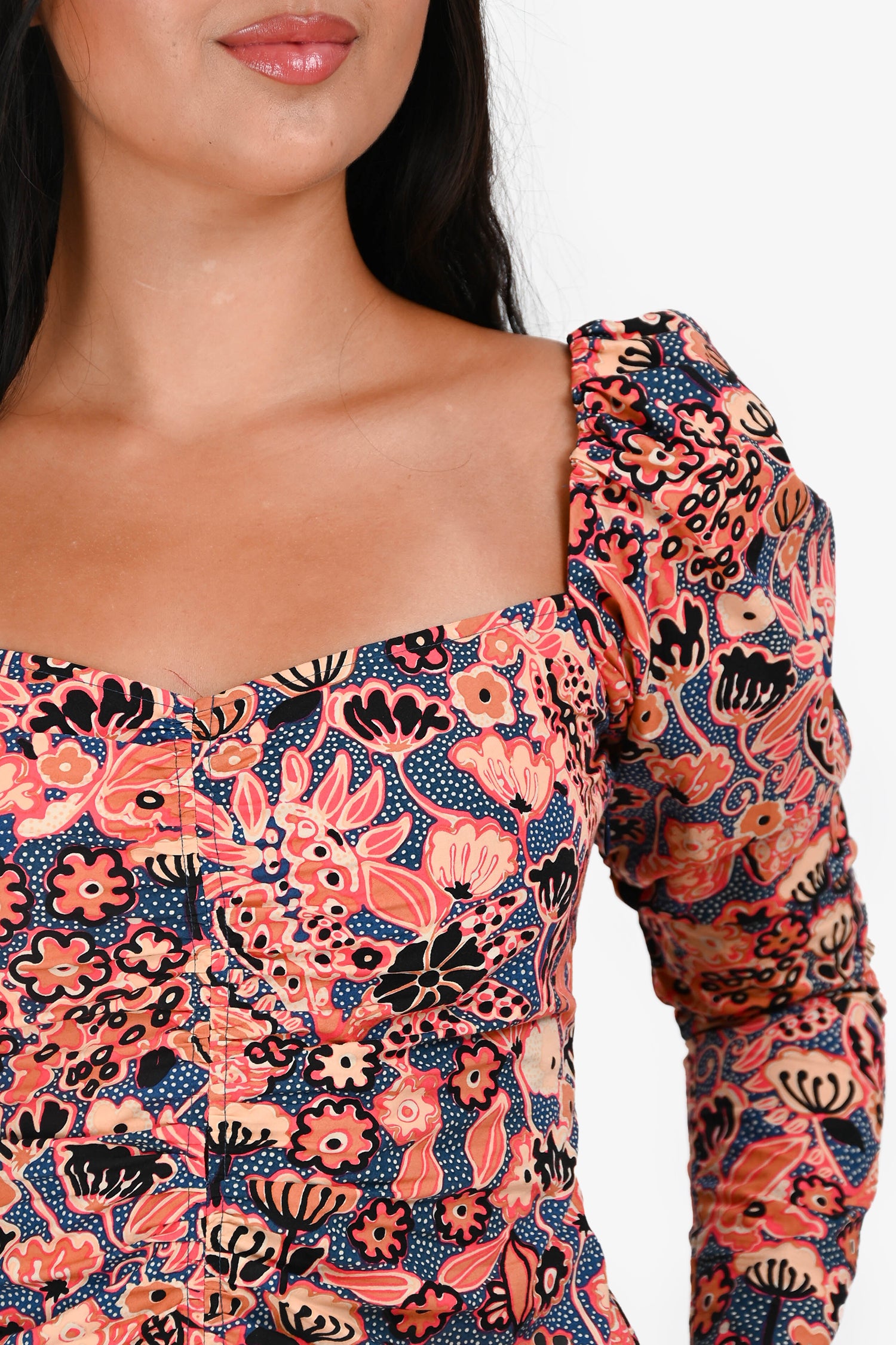 A.L.C. Coral/Blue Poplin Ruched Top Size 6