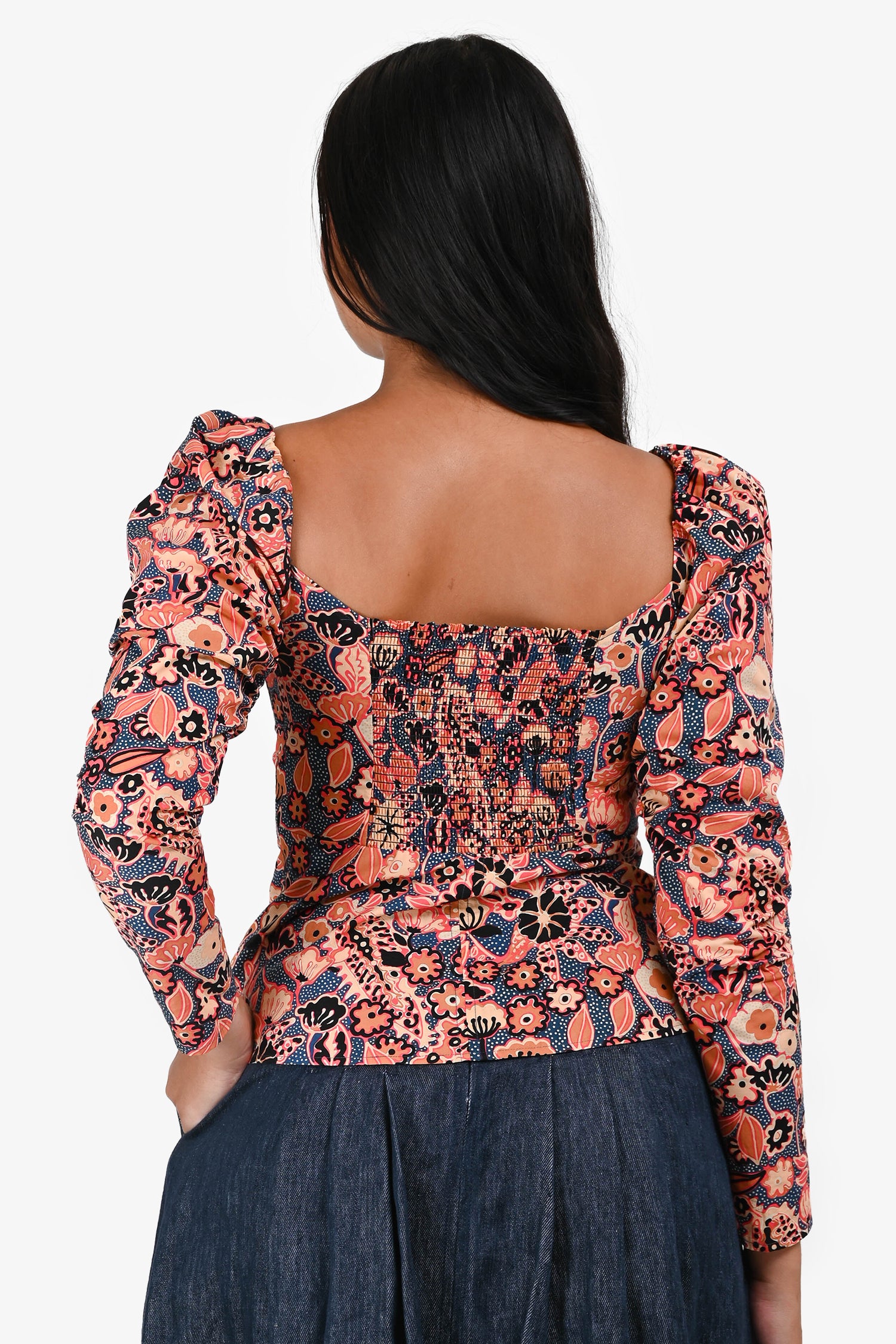 Refresh availabilityA.L.C. Coral/Blue Poplin Ruched Top. Pull-on.