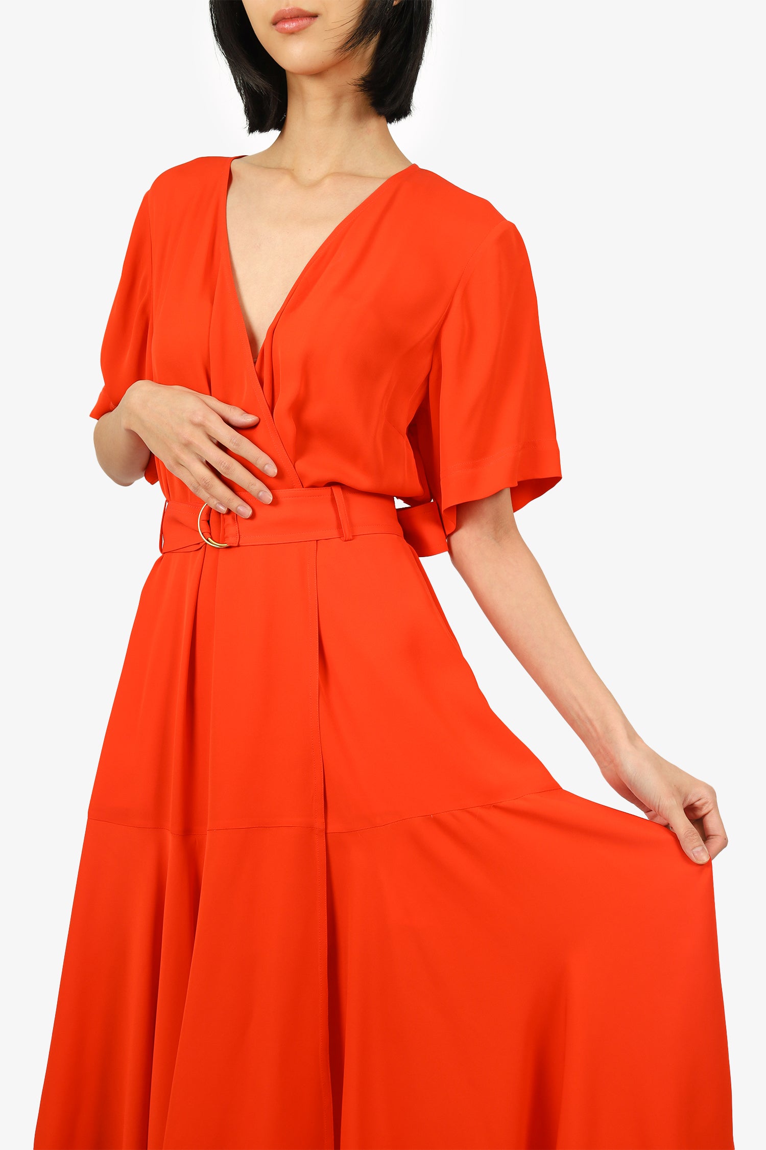 A.L.C Orange Silk Belted Wrap Dress Size 14