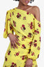 A.L.C. Yellow/Red Floral Printed Silk Asymmetrical Neckline Long-Sleeve Midi Dress Size 0