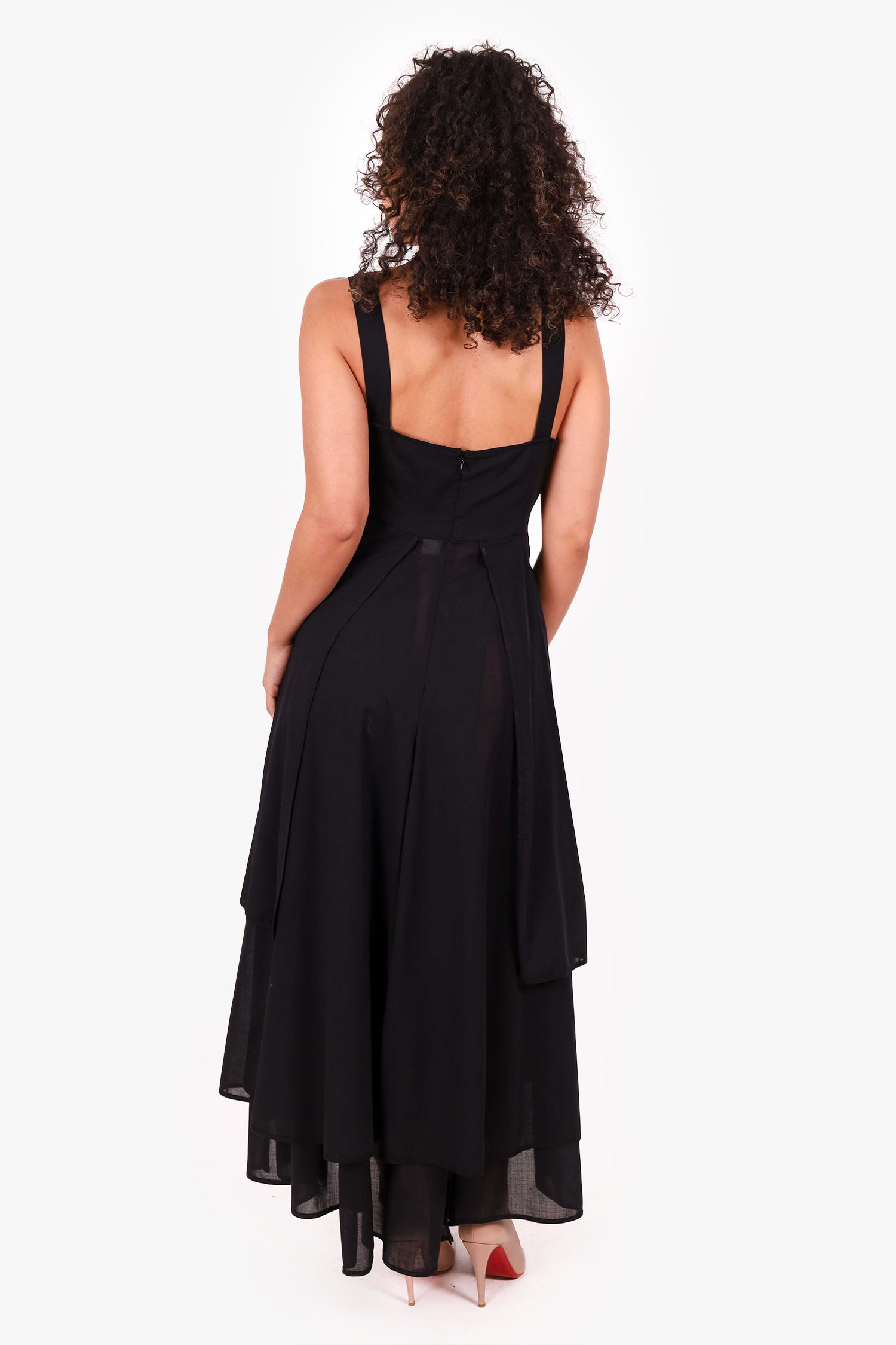 Refresh availabilityA.W.A.K.E. Mode Black Wool Sweetheart Neckline Panelled Midi Dress. Slip-on. Sweetheart-neckline with cage design. Rear zip closure. Panelled bottom. Tonal stitching.