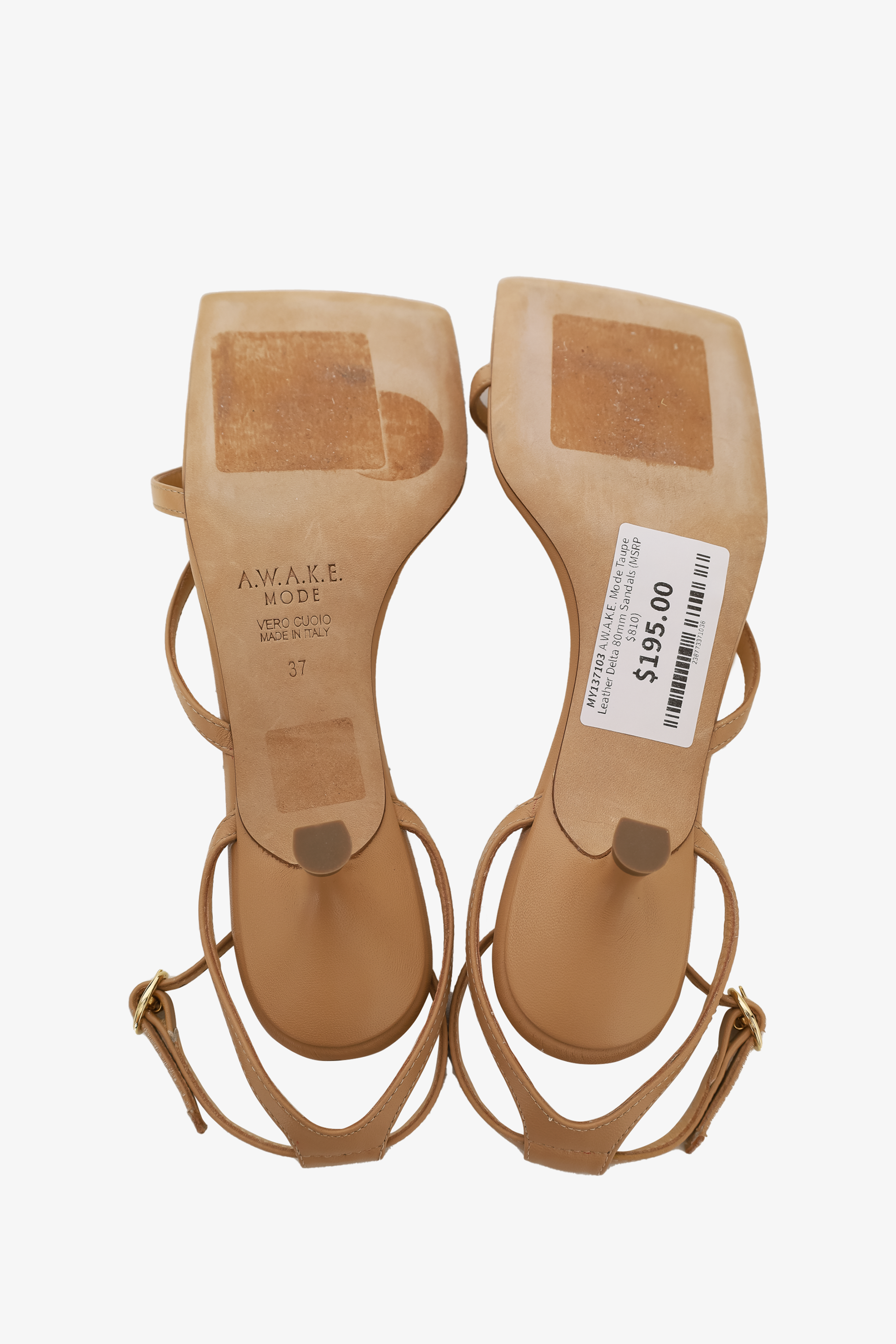 A.W.A.K.E. Mode Taupe Leather Delta 80mm Sandals Size 37