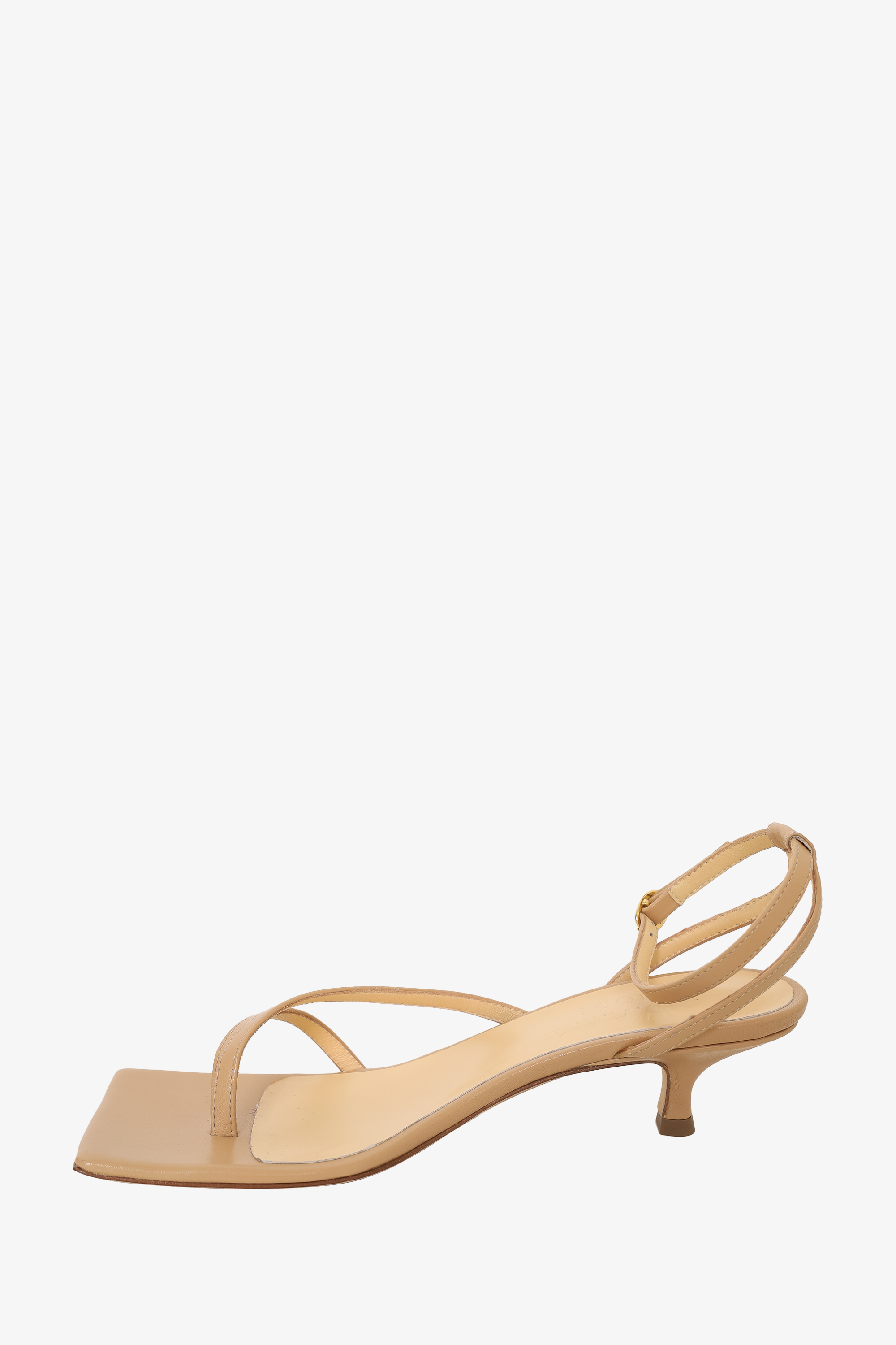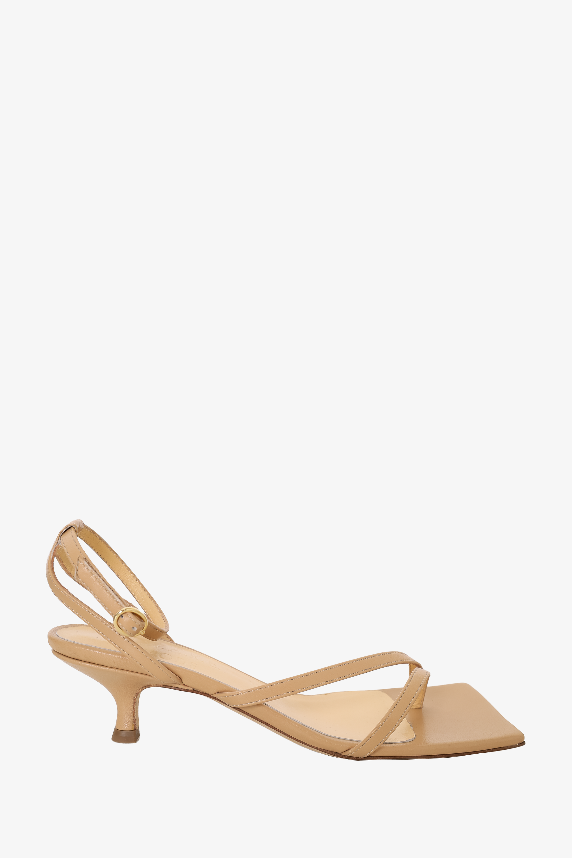 Refresh availabilityA.W.A.K.E. Mode Taupe Leather Delta 80mm Sandals. Ankle buckle closure. Tonal stitching.