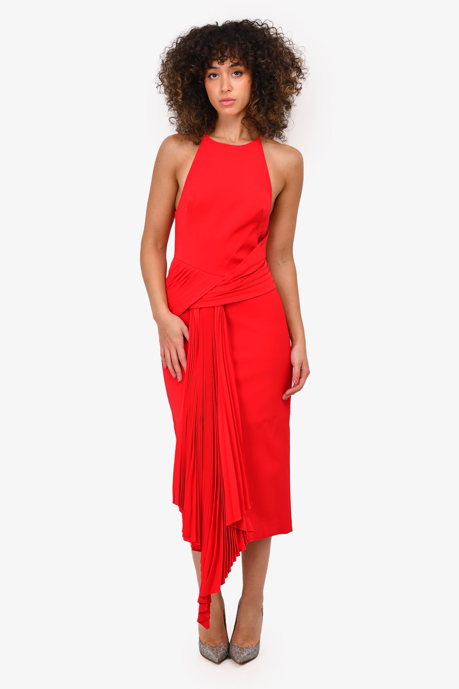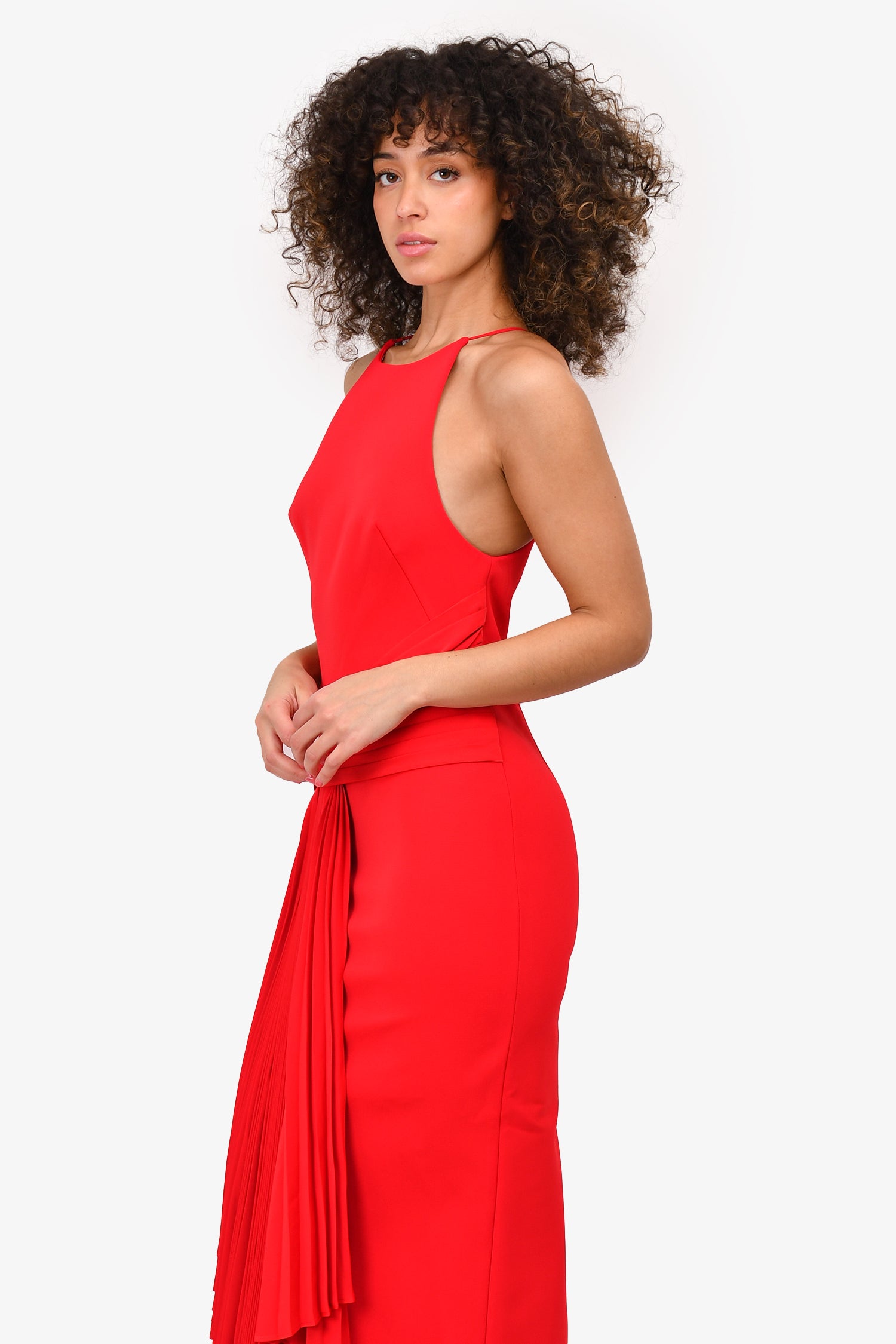 Acler Red Sleeveless Detailed Drape Long Dress Size 2