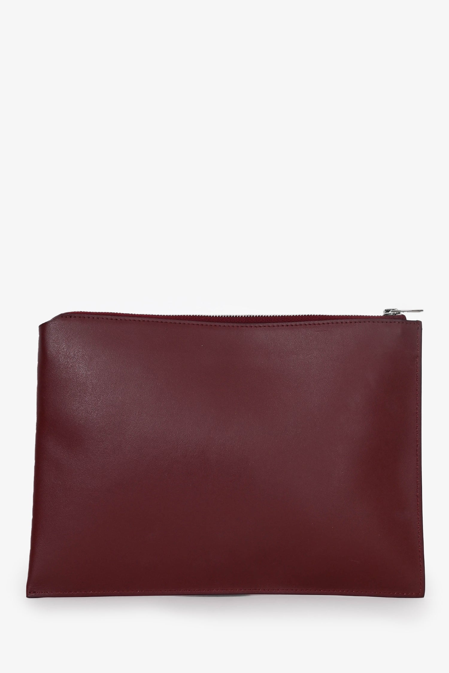 Refresh availabilityAcne Studios Burgundy Leather Zip Pouch. Top zip closure. Silver-tone hardware. Open interior.