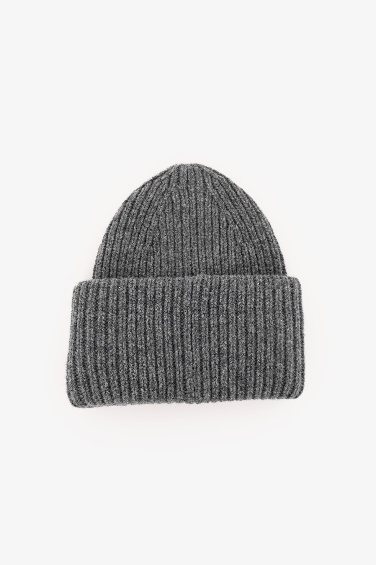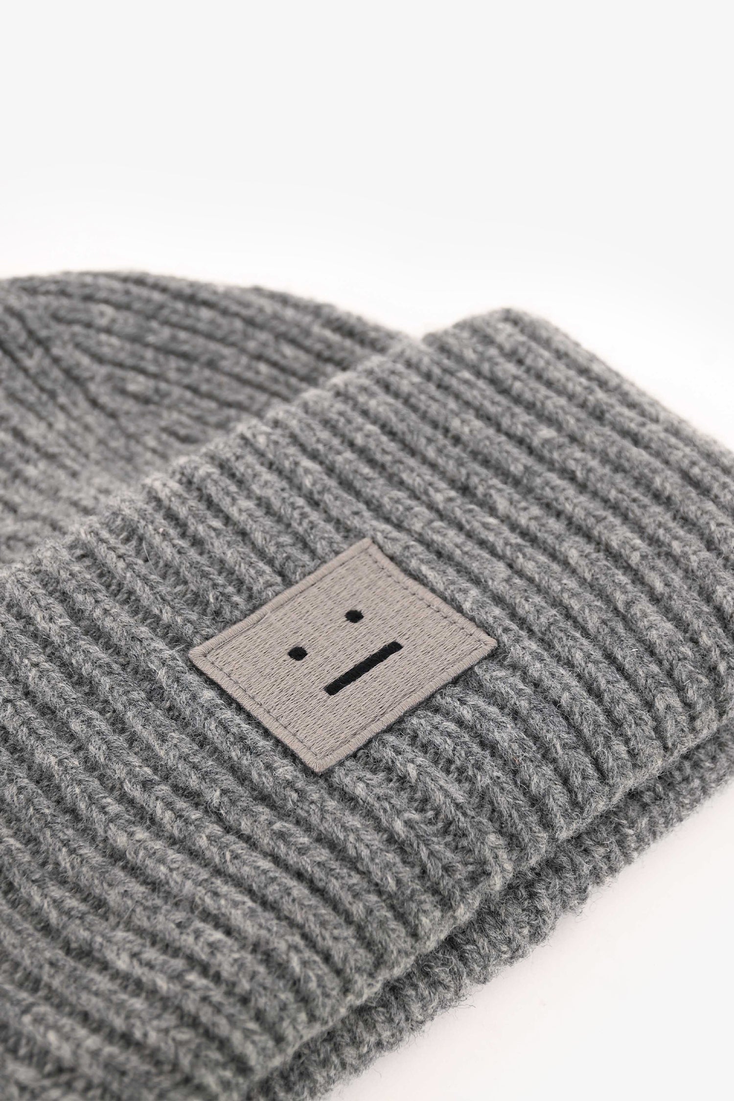 Refresh availabilityAcne Studios Grey Wool Pansy Beanie. Ribbed knit construction with folded cuff. Tonal stitching.