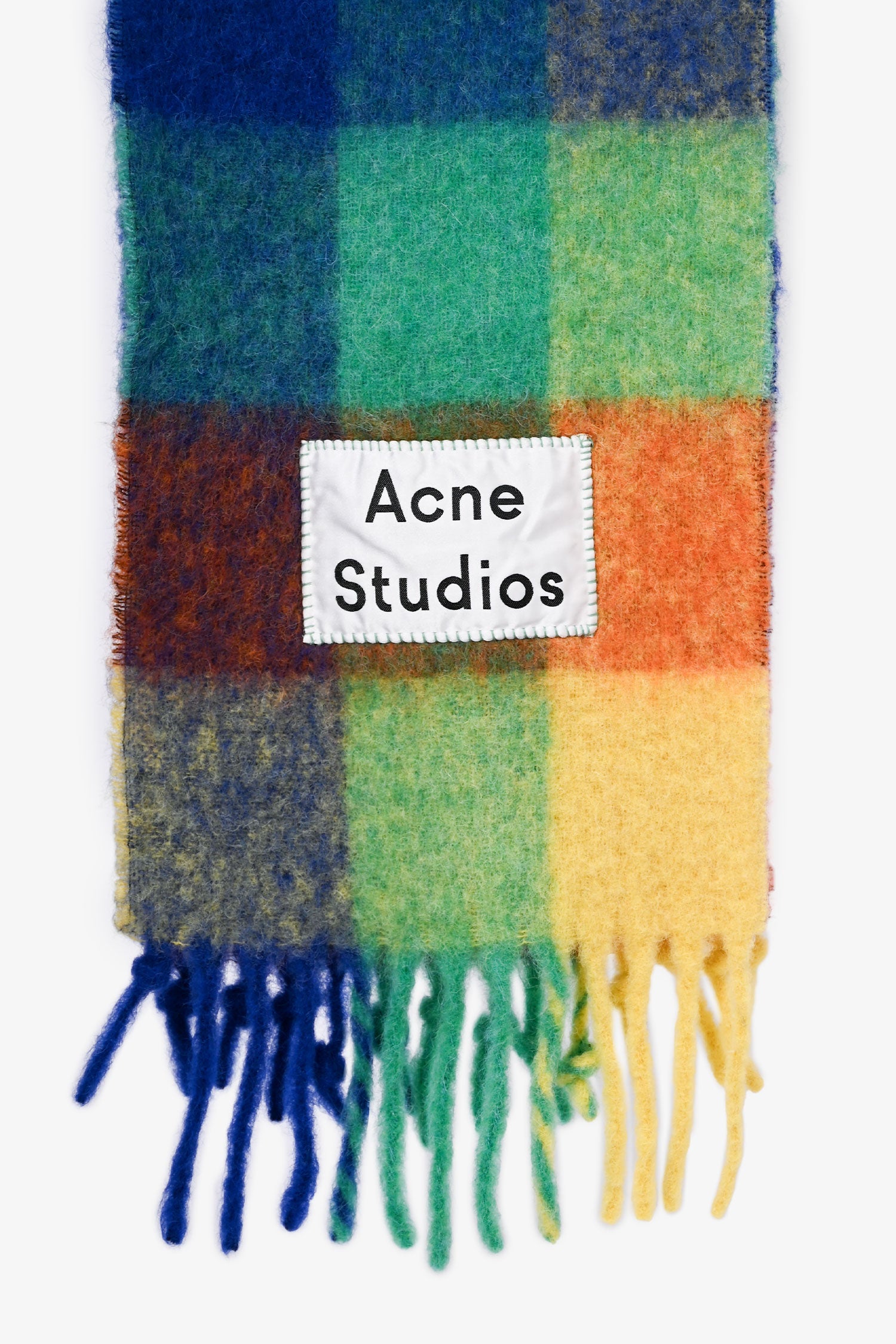 Refresh availabilityAcne Studios Blue/Multicolour Check Scarf. Fringe ends.