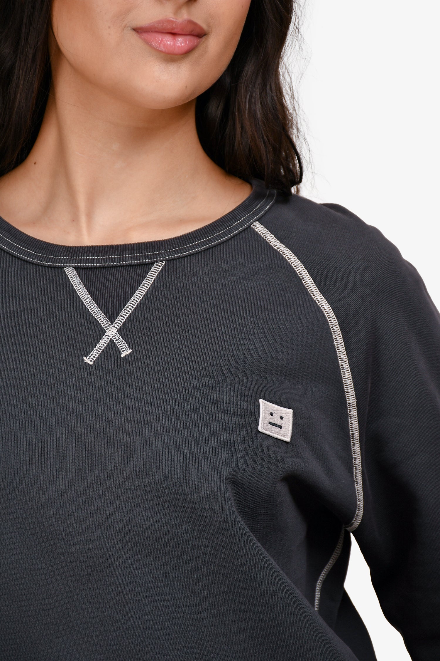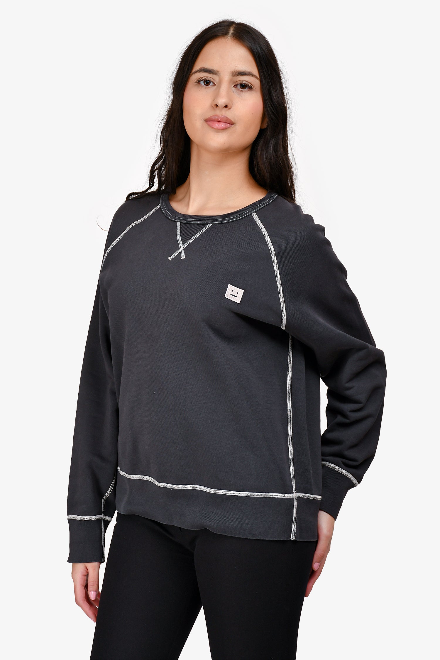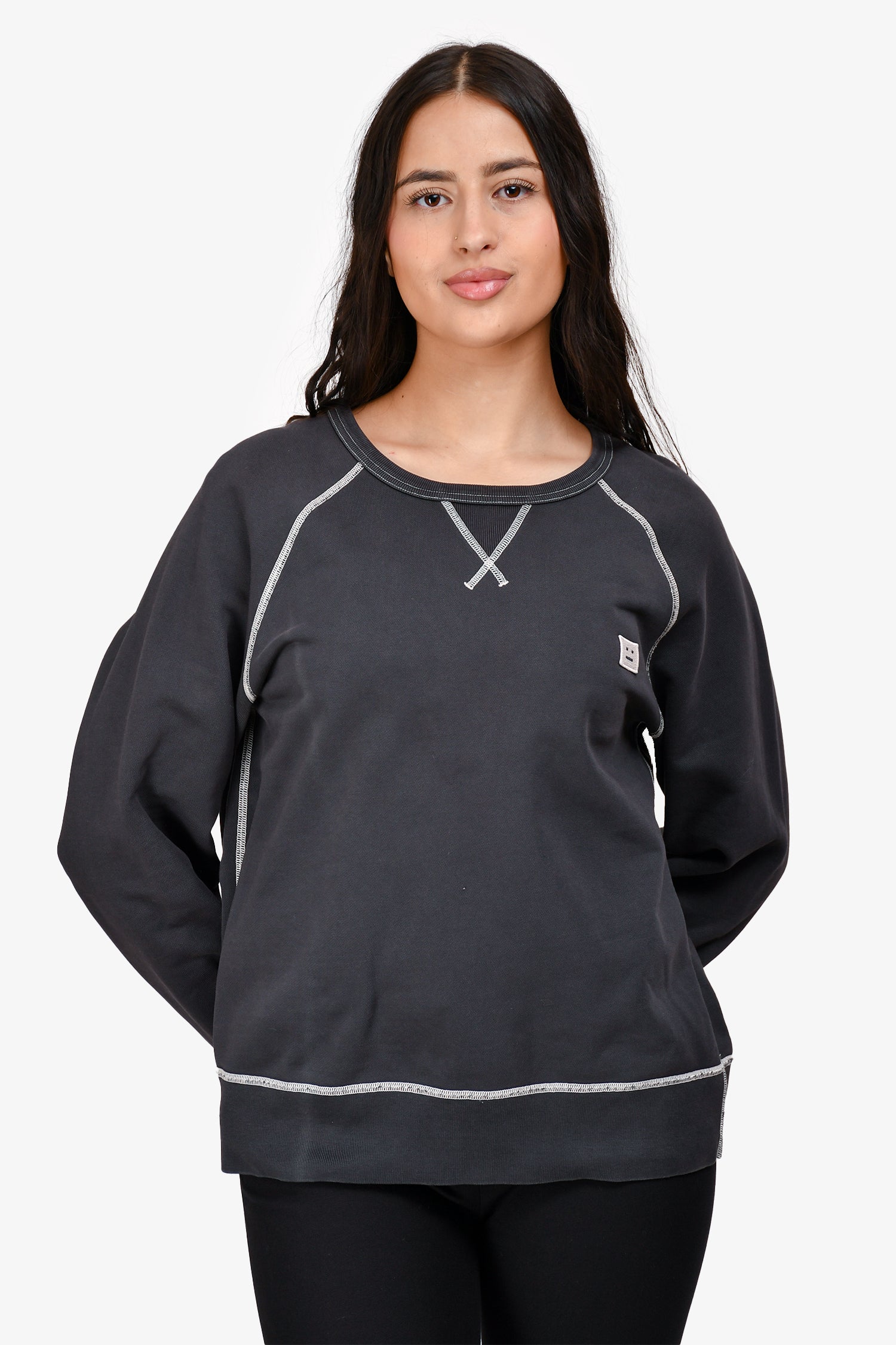 Refresh availabilityAcne Studios Grey Contrast Trim Sweatshirt. Pull-on. Crew-neckline. Embroidery on the chest. Contrast stitching.