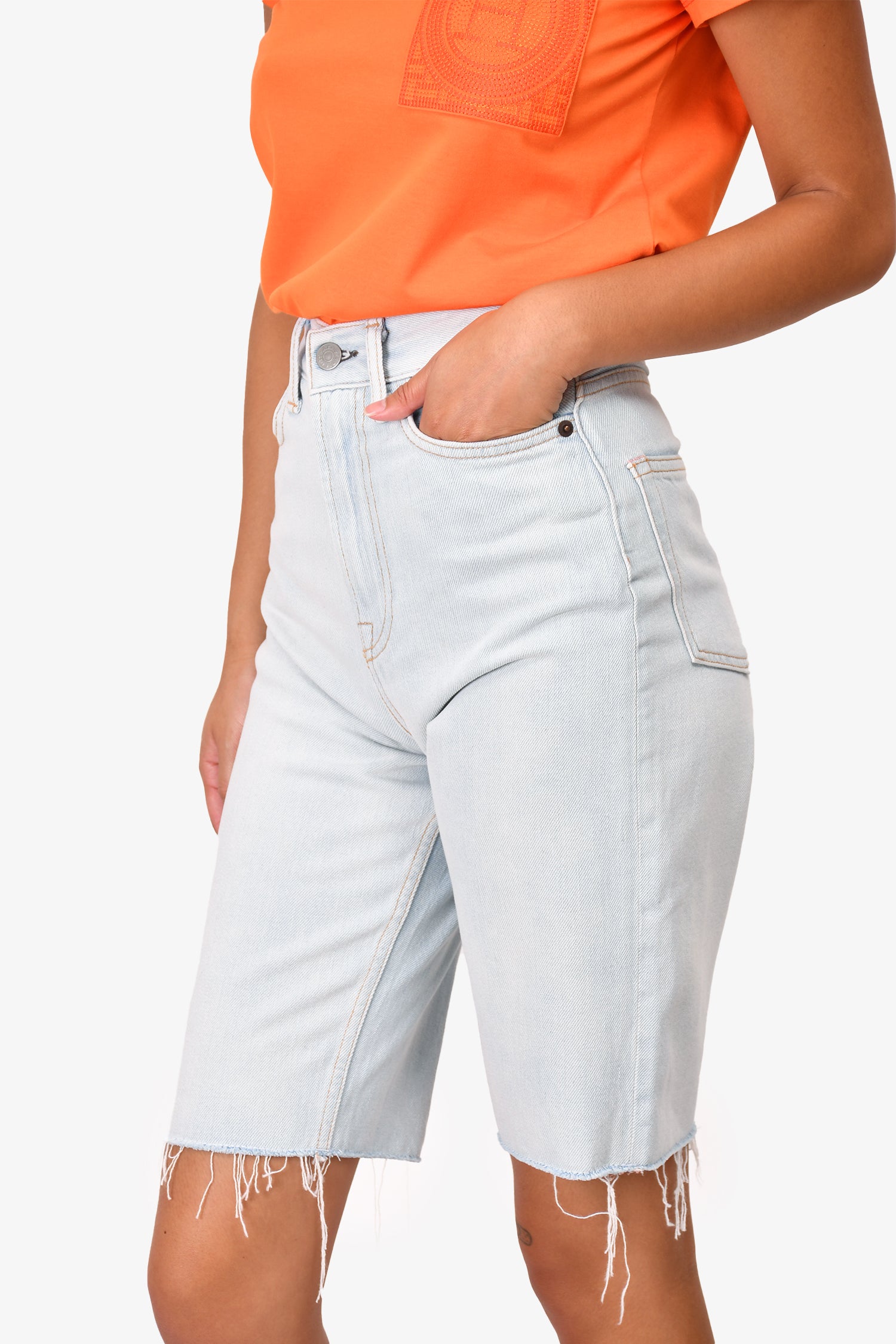 Refresh availabilityAcne Studios Light Blue Denim Bermuda Shorts. Contrast topstitching. Intentional frayed hemming.