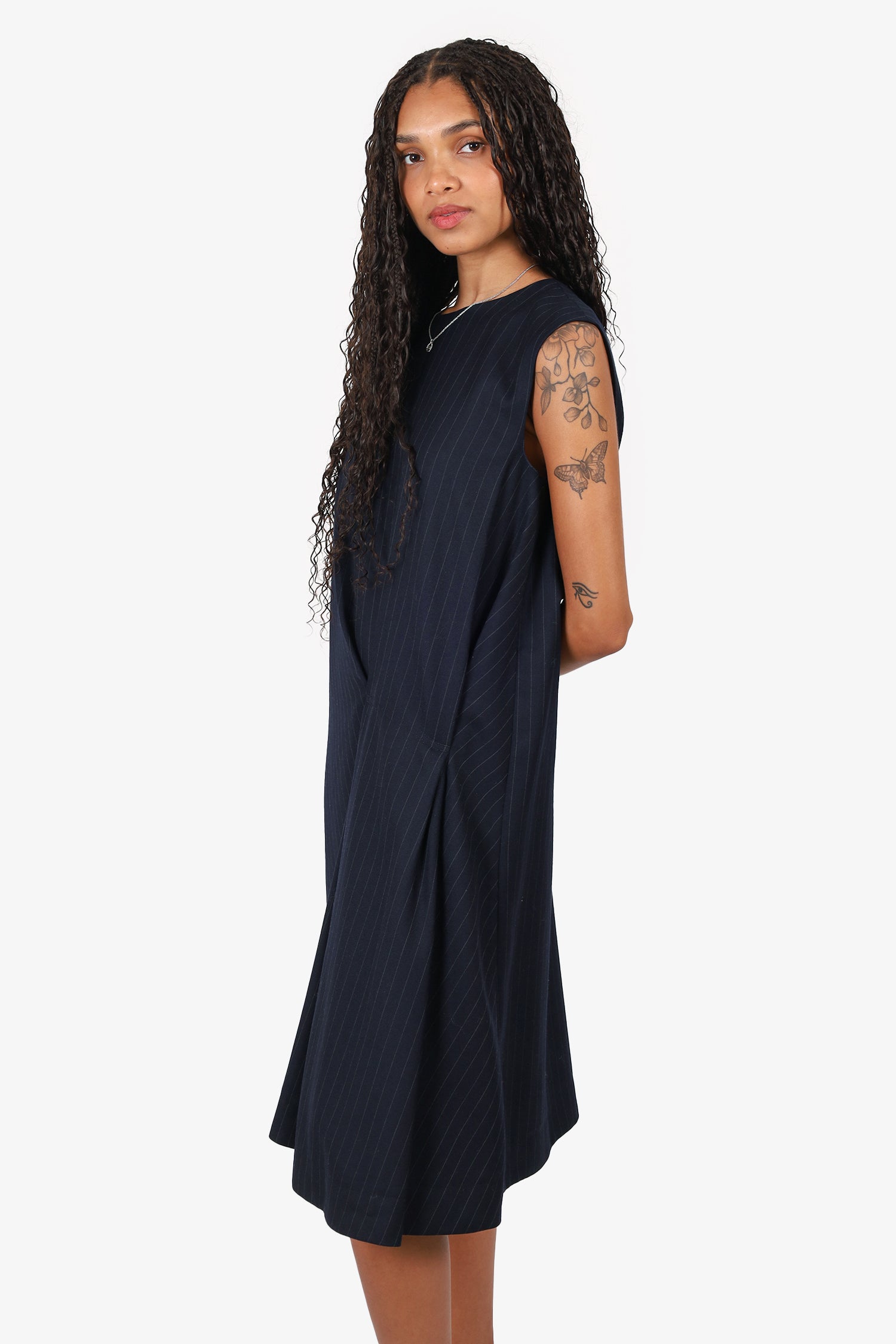 Acne Studios Navy Wool Pinstripe Shift Dress Size 40