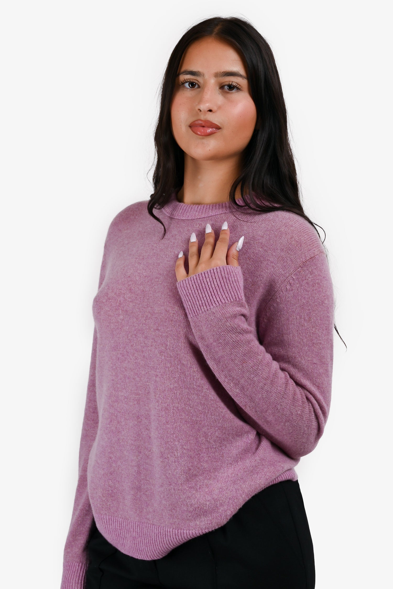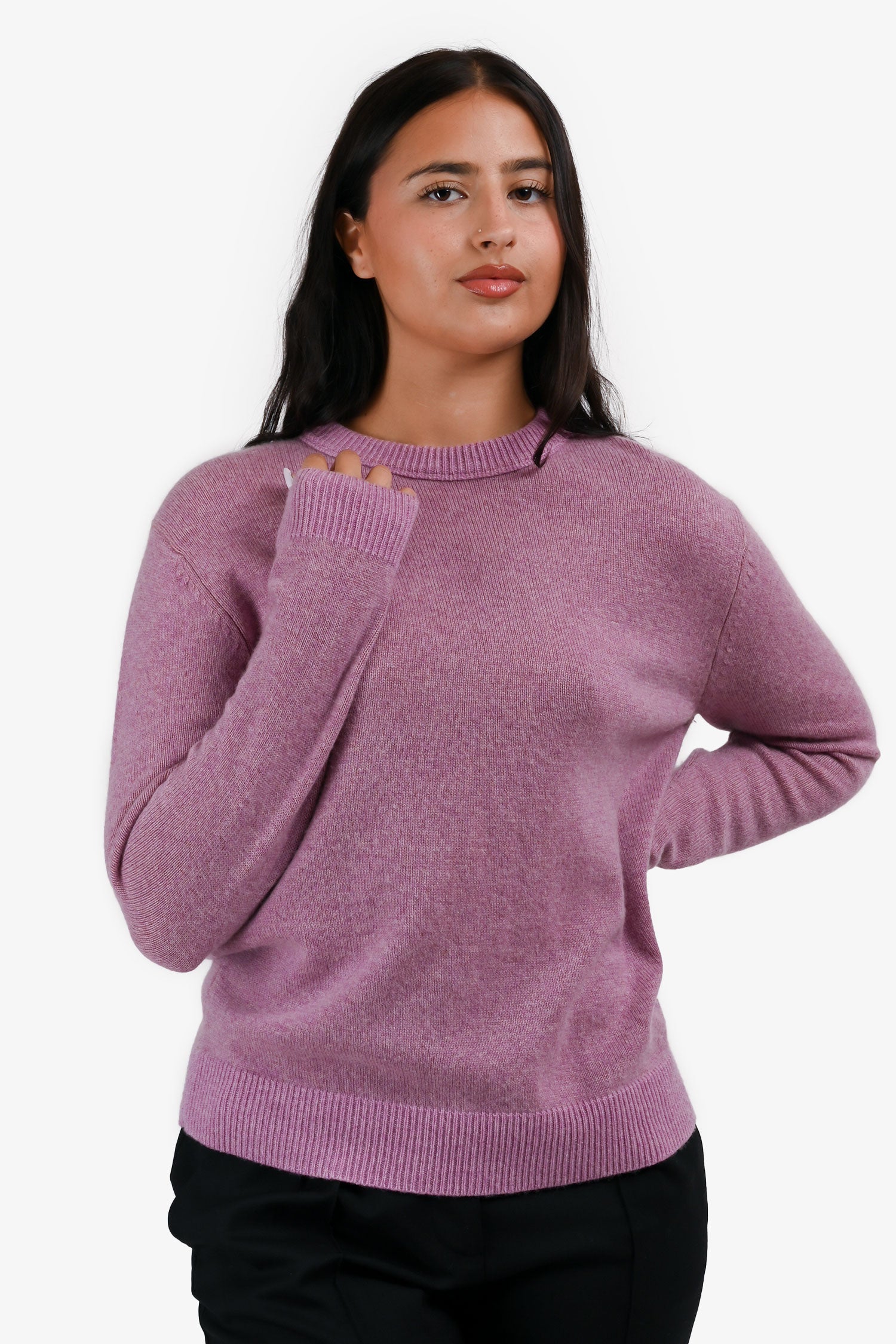 Refresh availabilityAcne Studios Purple Cashmere Crewneck Knit Sweater. Round neck. Pull-on. Ribbed neck, cuffs and hem.