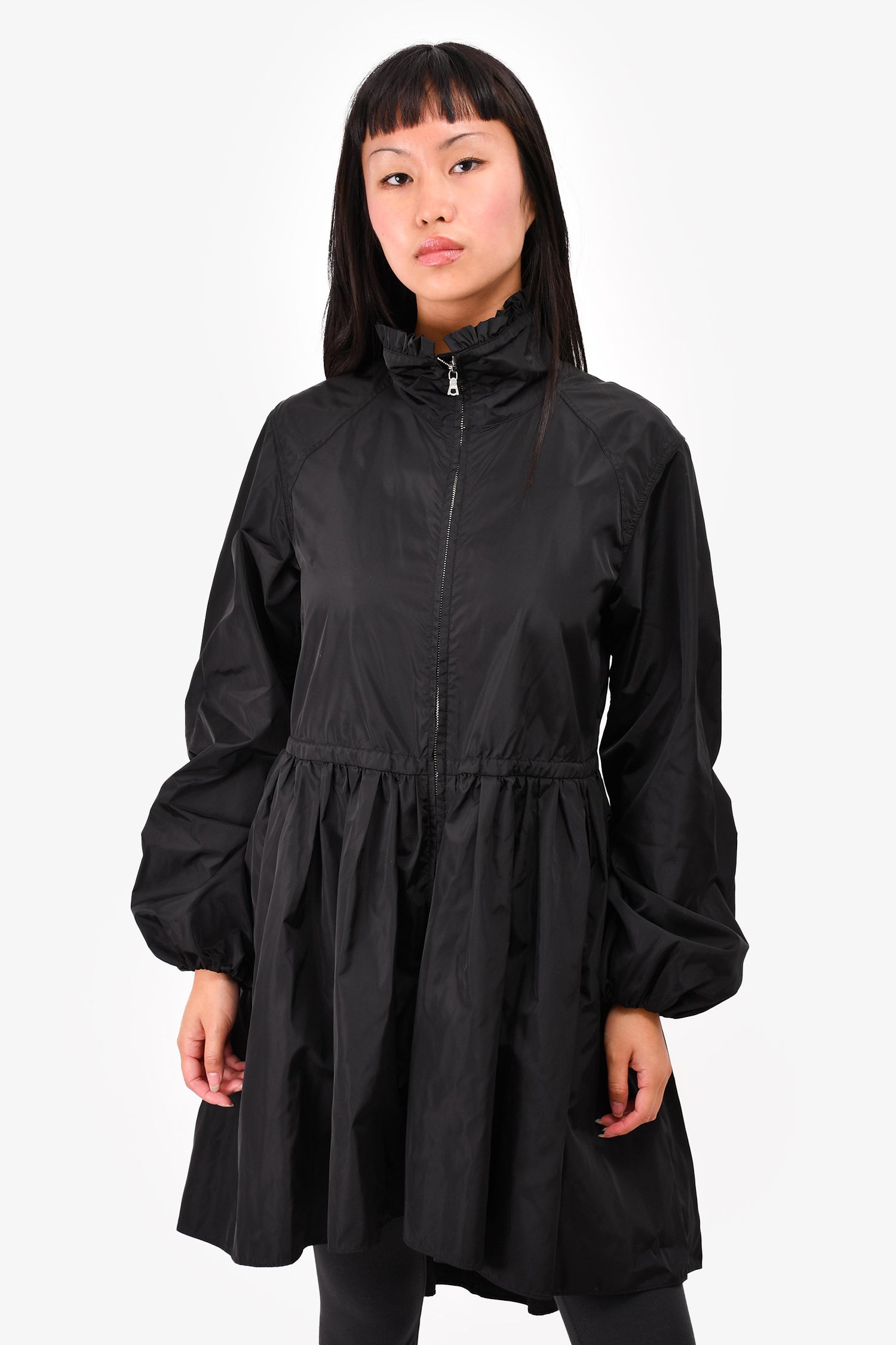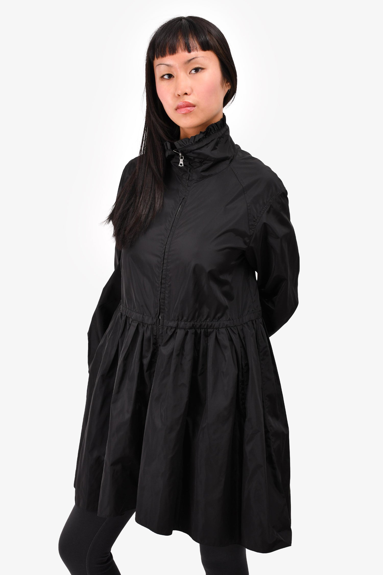 Adam Lippes Black Nylon Zip Rain Coat with Belt Size XS