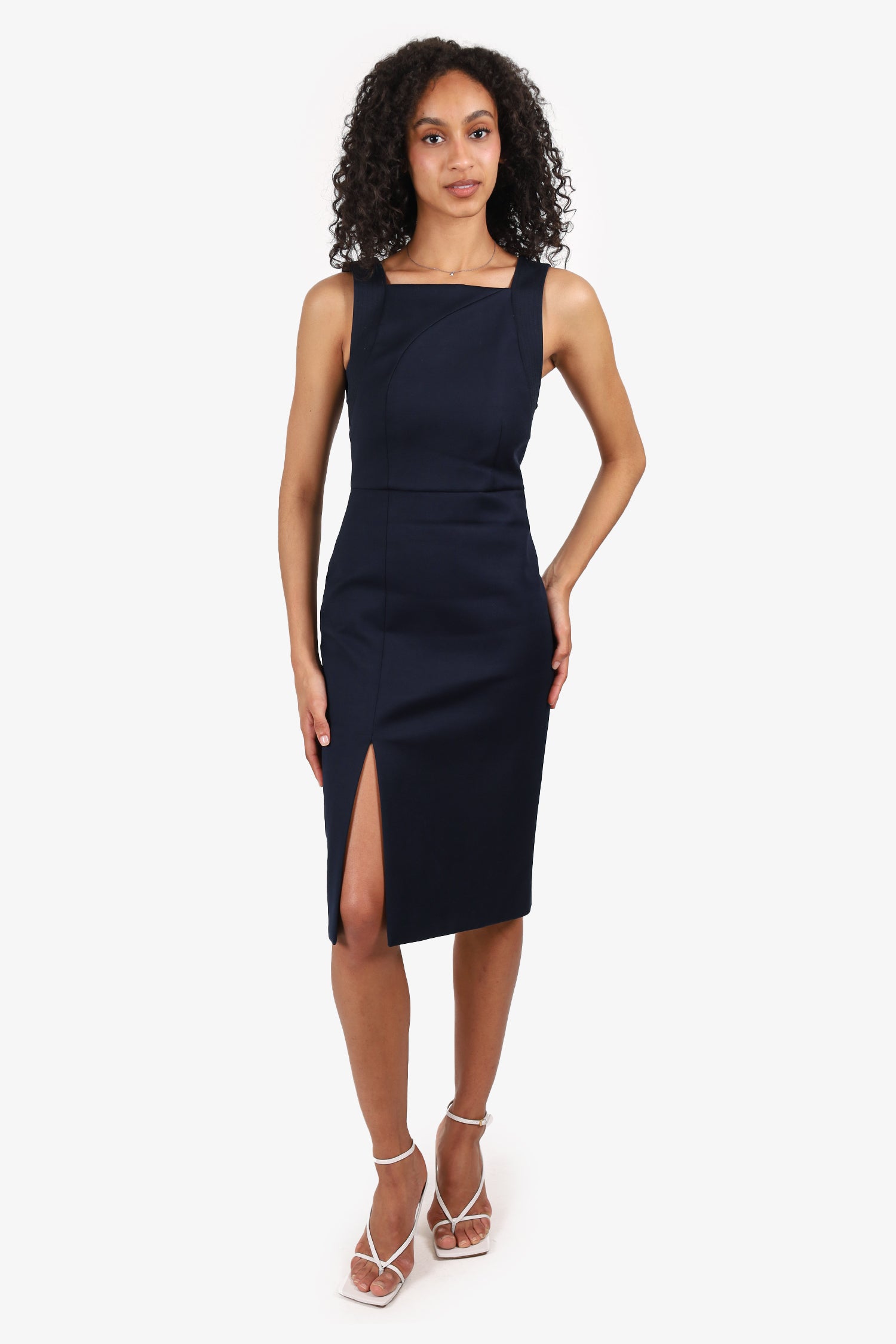 Refresh availabilityAdam Lippes Navy Sleeveless Maxi Dress. Slip-on. Squared-neckline. Rear zip and hook closure. Front bottom slit. Lined interior. Tonal stitching.
