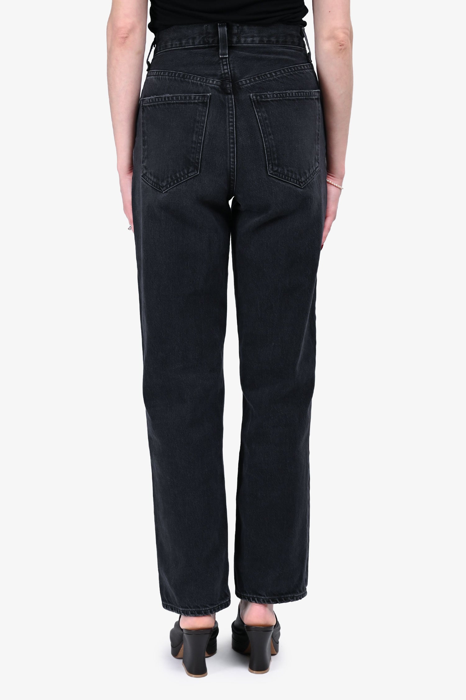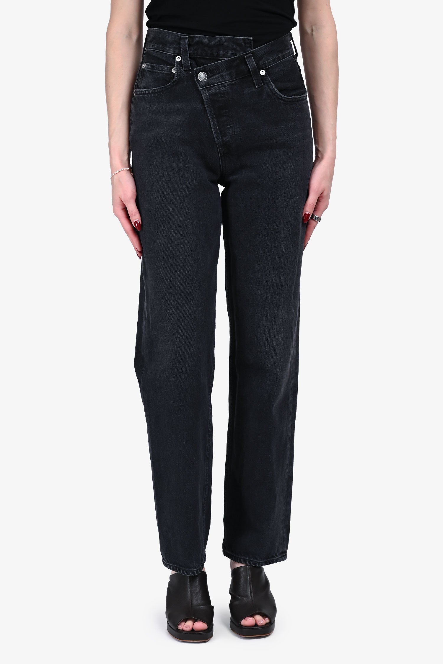 Refresh availabilityAgolde Black Denim 'Criss Cross' Jeans. Pull-on. Belt loops on the waist. Zipper and button closure. Classic 5-pockets style. Distress detailing on the pockets. Tonal stitching.