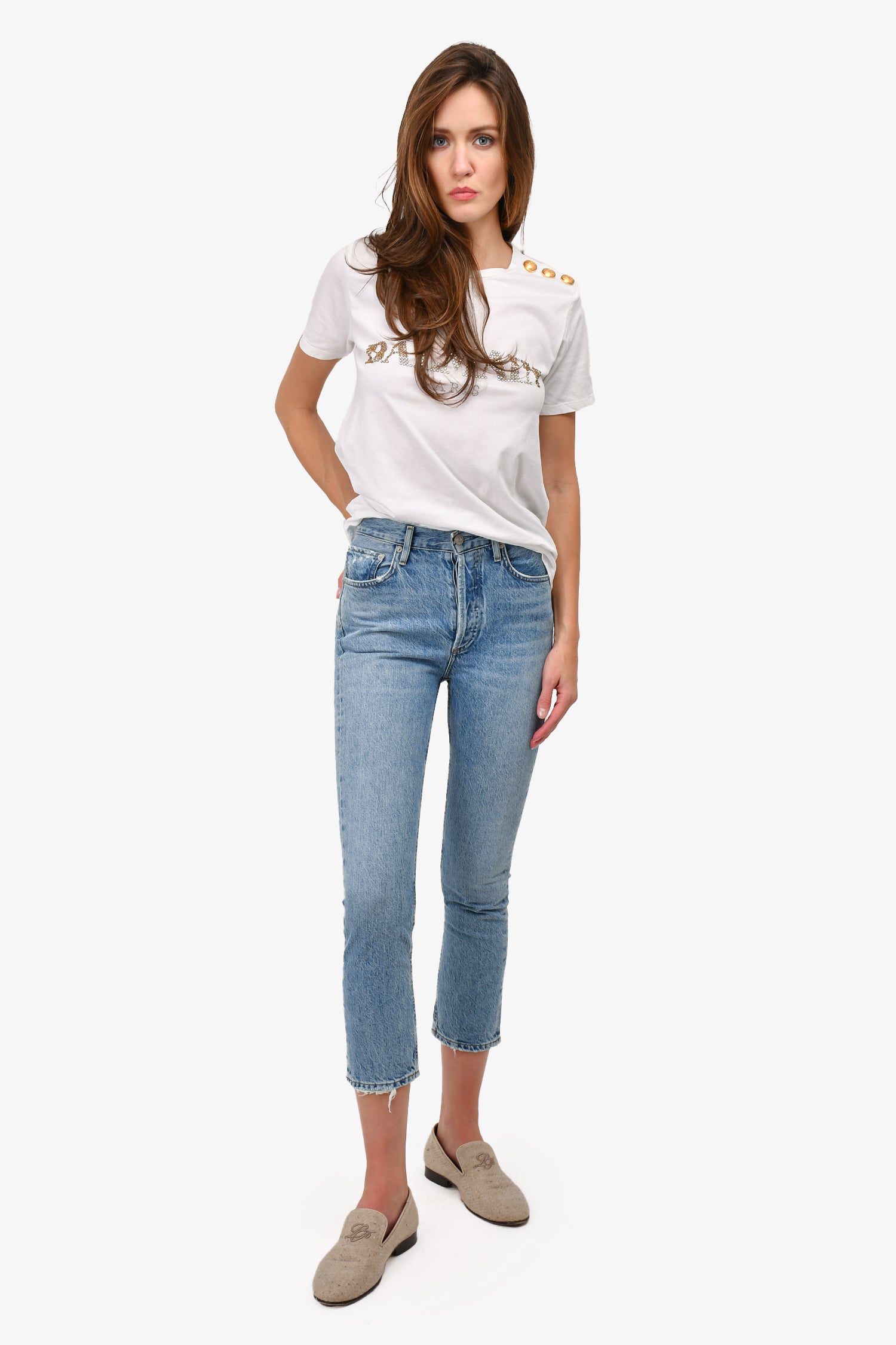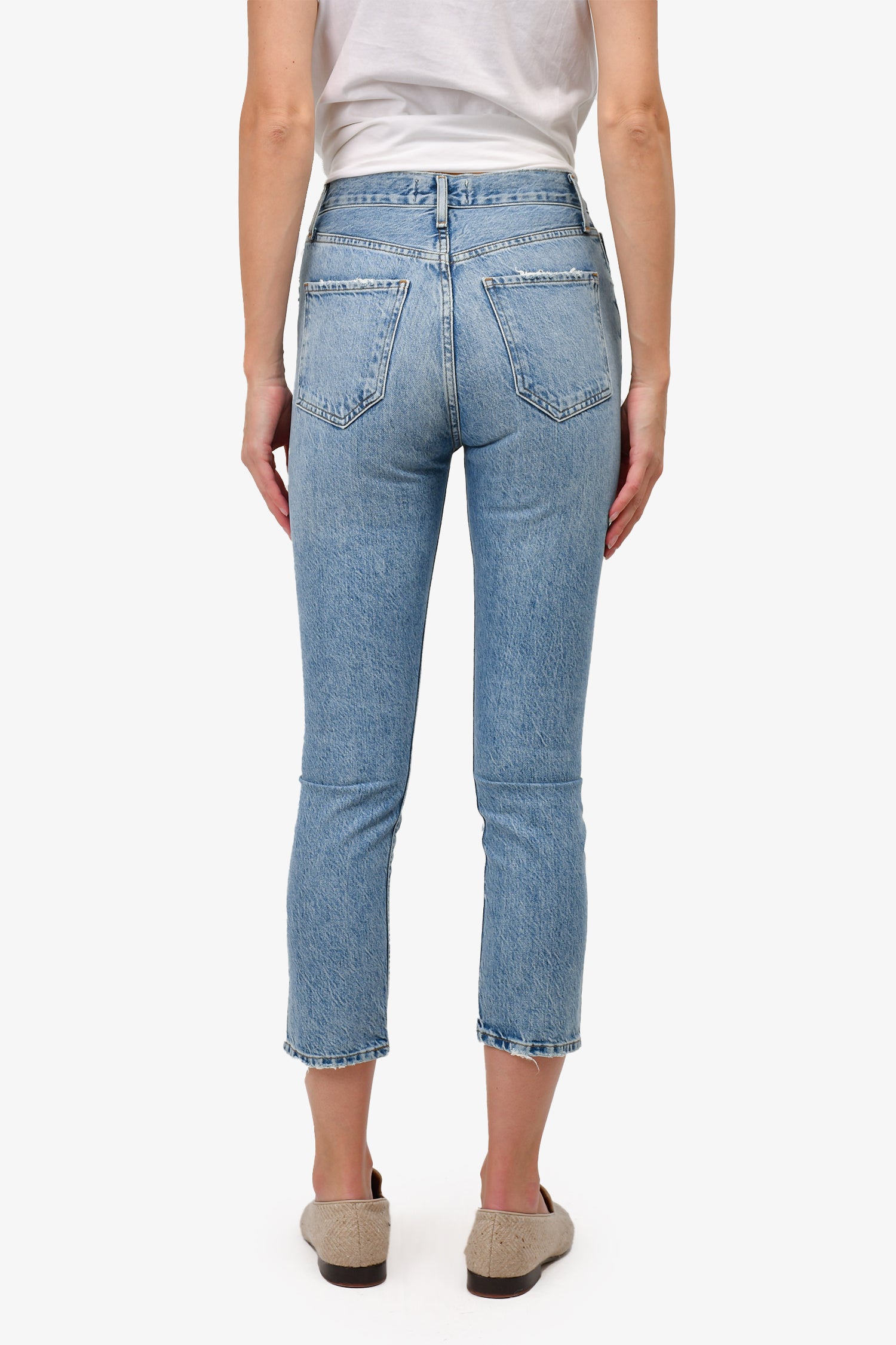 Agolde Black Denim High Rise Crop 'Riley' Jeans Size 23