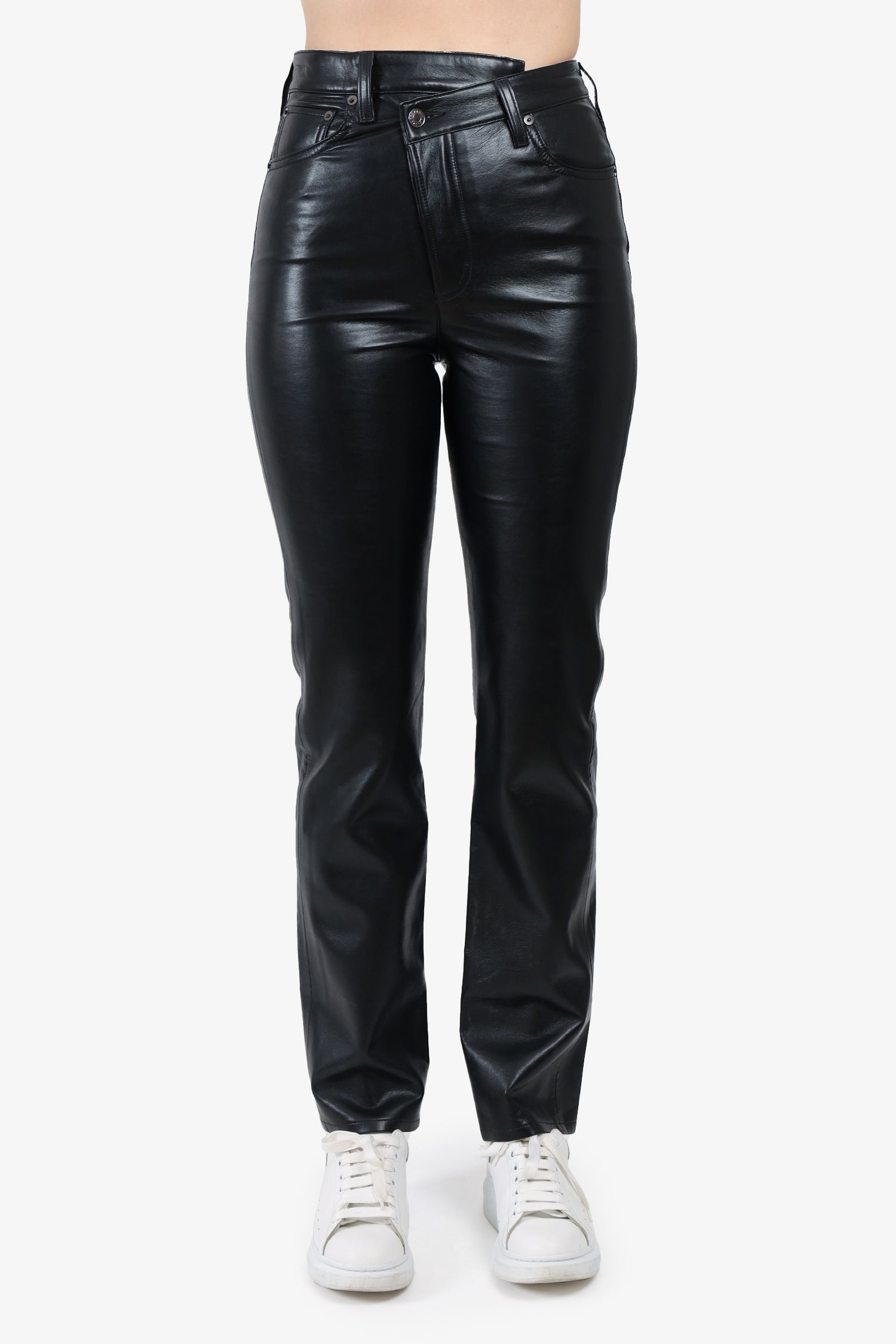 Refresh availabilityAgolde Black Leather Criss Cross Straight Leg Pants. Fly button closure. Tonal stitching.