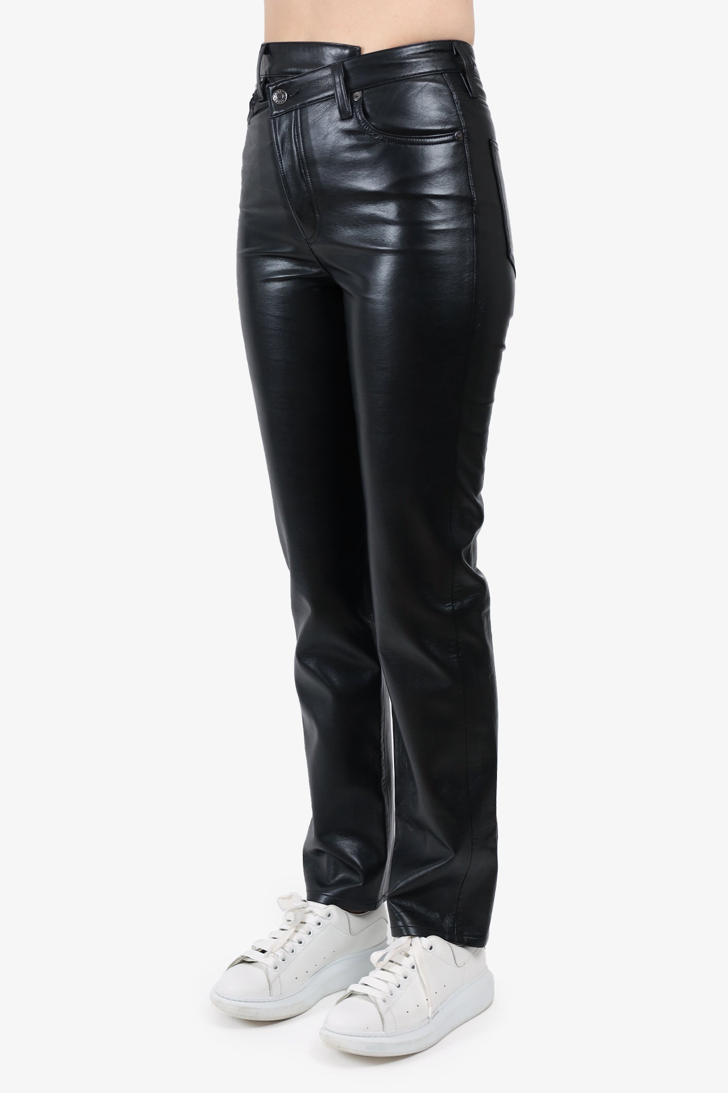 Agolde Black Leather Criss Cross Straight Leg Pants Size 25