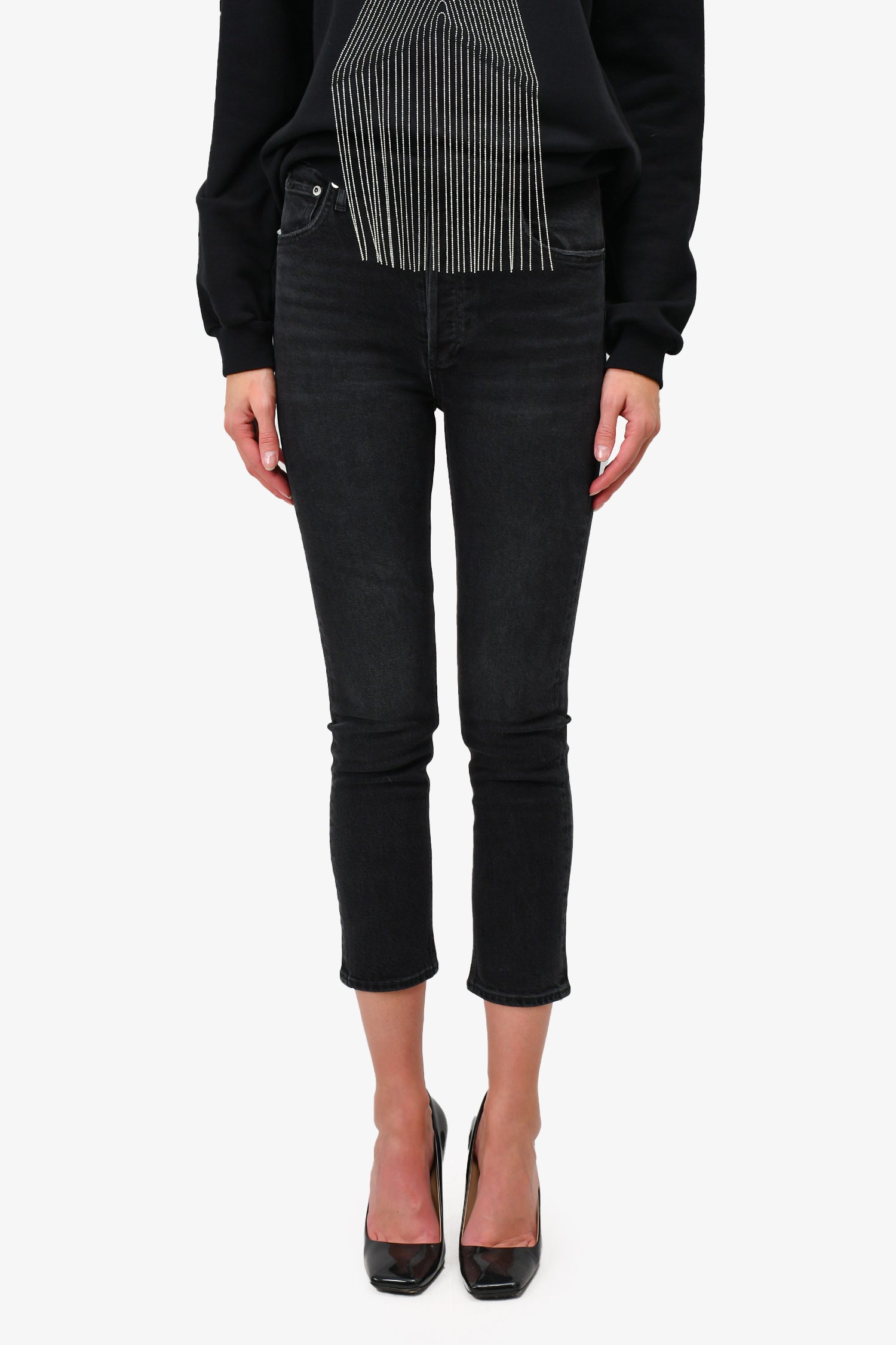 Agolde Dark Grey Wash Riley Straight Leg Cropped Jeans Size 25