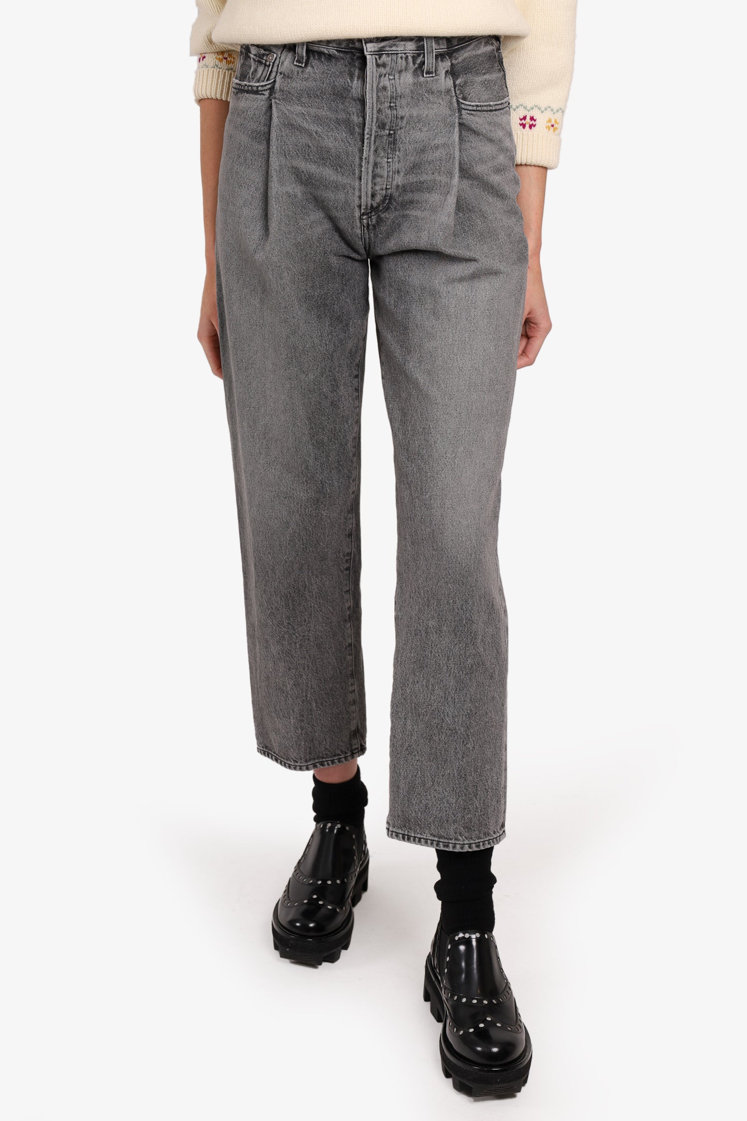 Refresh availabilityAgolde Grey Denim Wide Leg Jeans. Fly button and zip closure. Front open pockets. Open rear pockets. Tonal stitching.