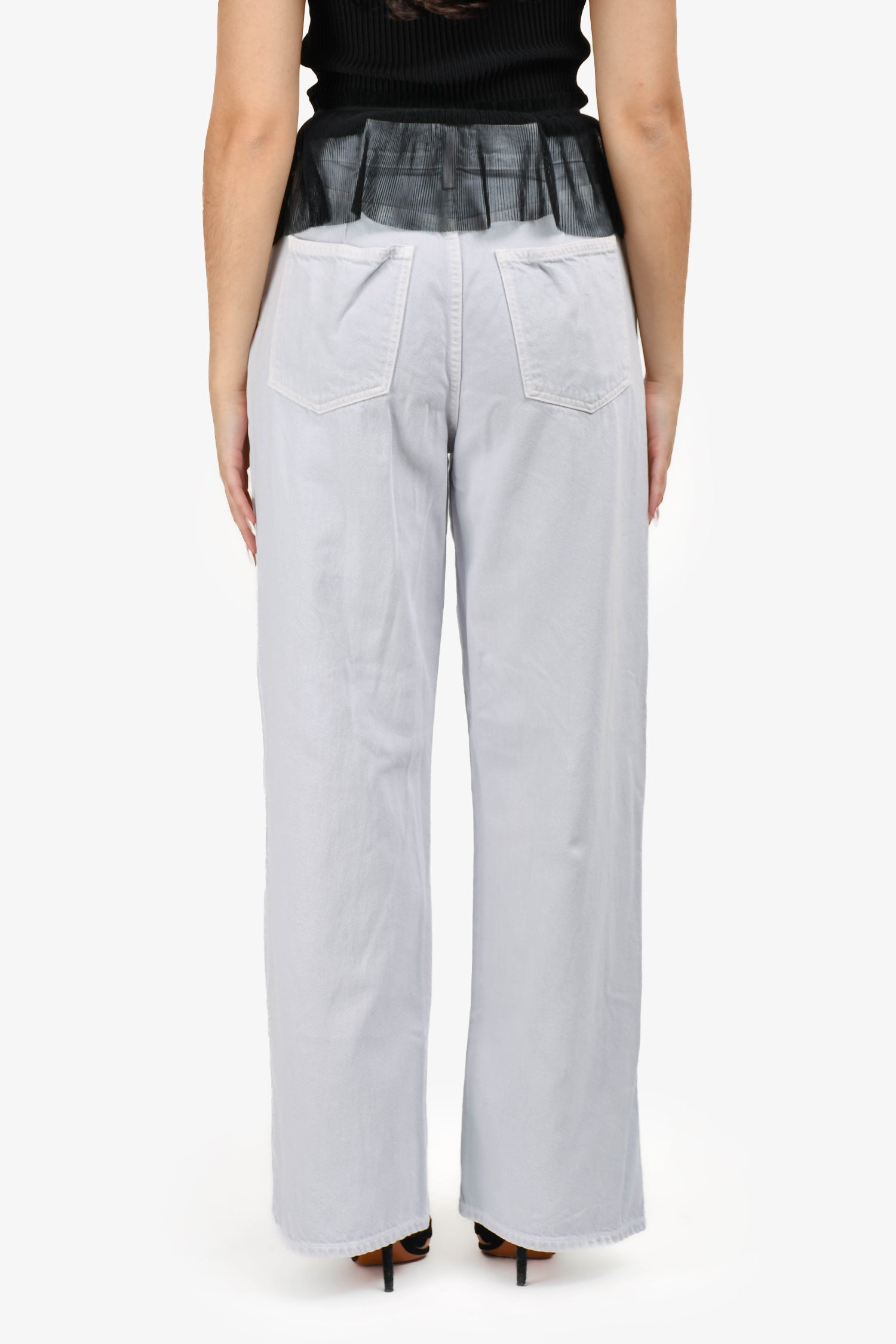 Refresh availabilityAgolde Lilac Denim Straight Legged Jeans. Front button-up closure. Waist belt loops. Classic five-pocket style. Asymmetrical waist. Tonal stitching.