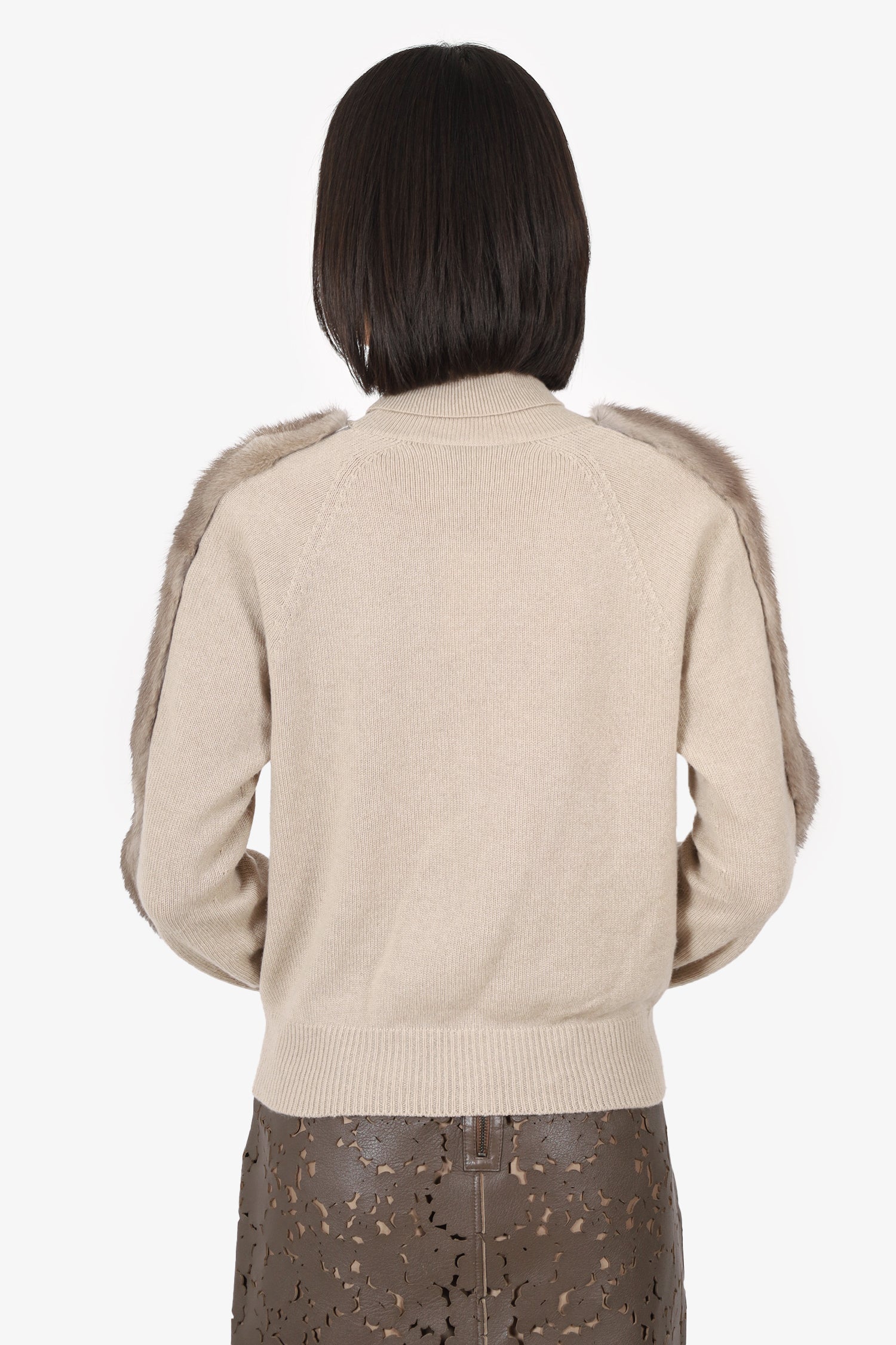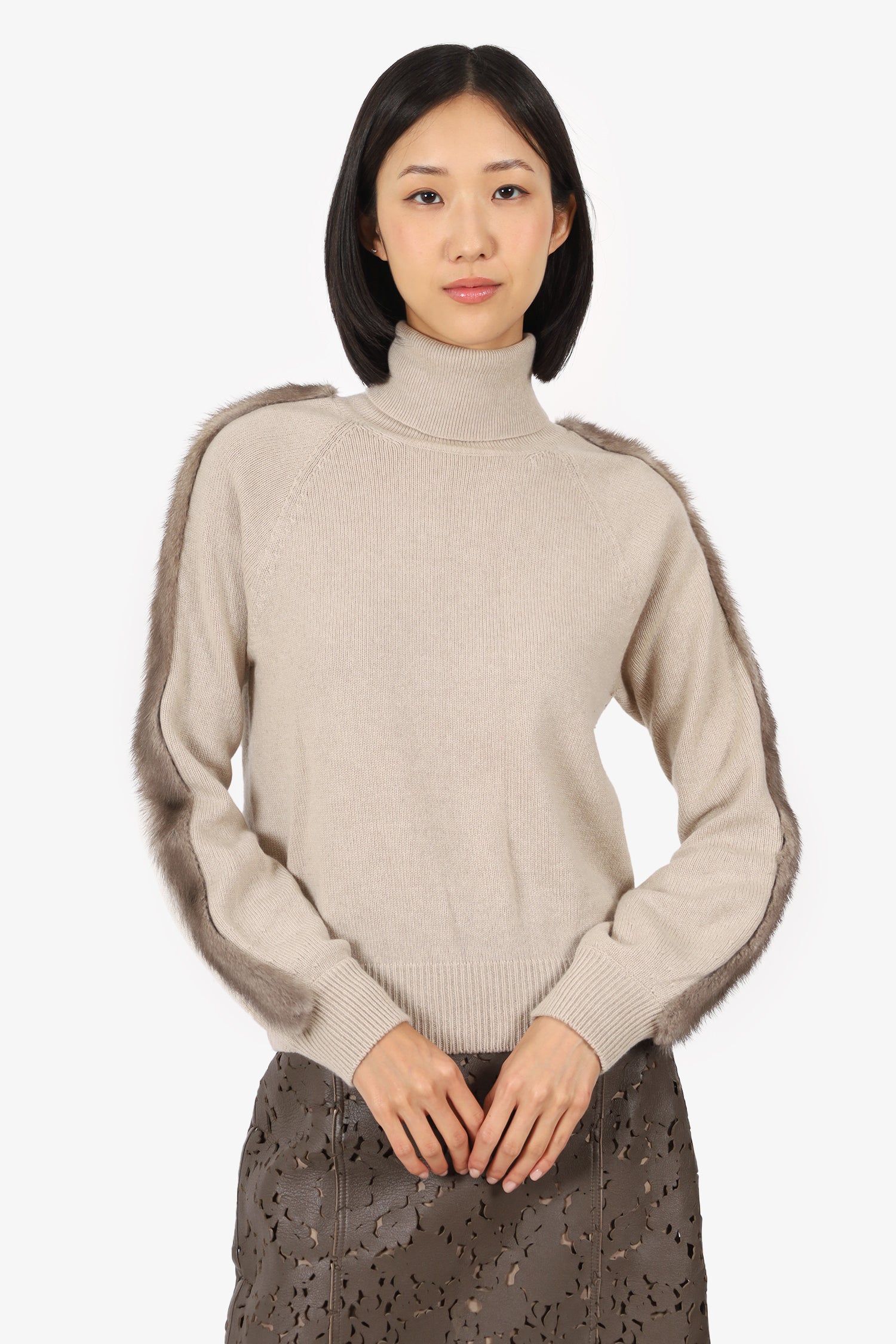 Agona Beige Cashmere/Mink Detail Turtle Neck Sweater Size S