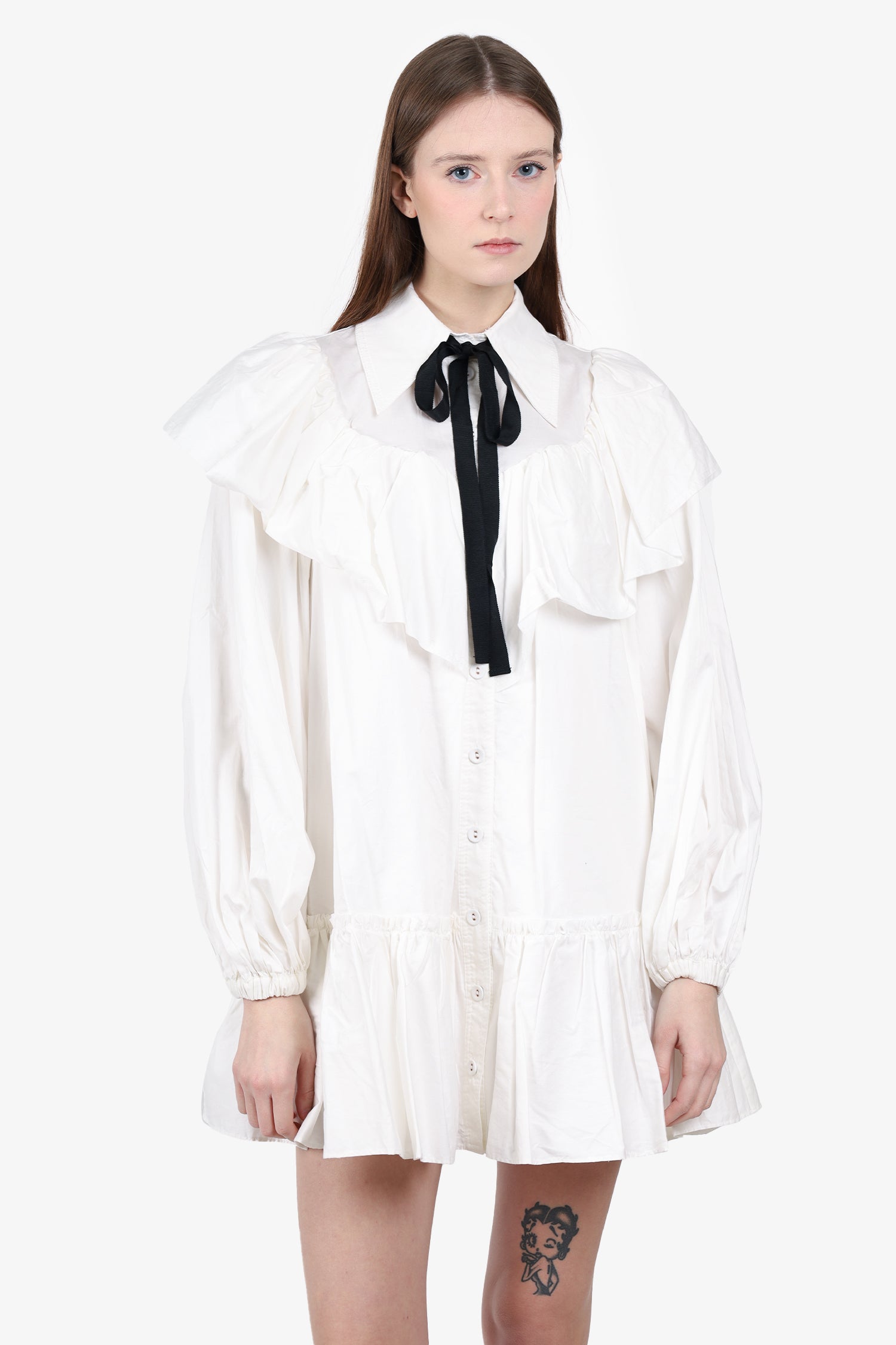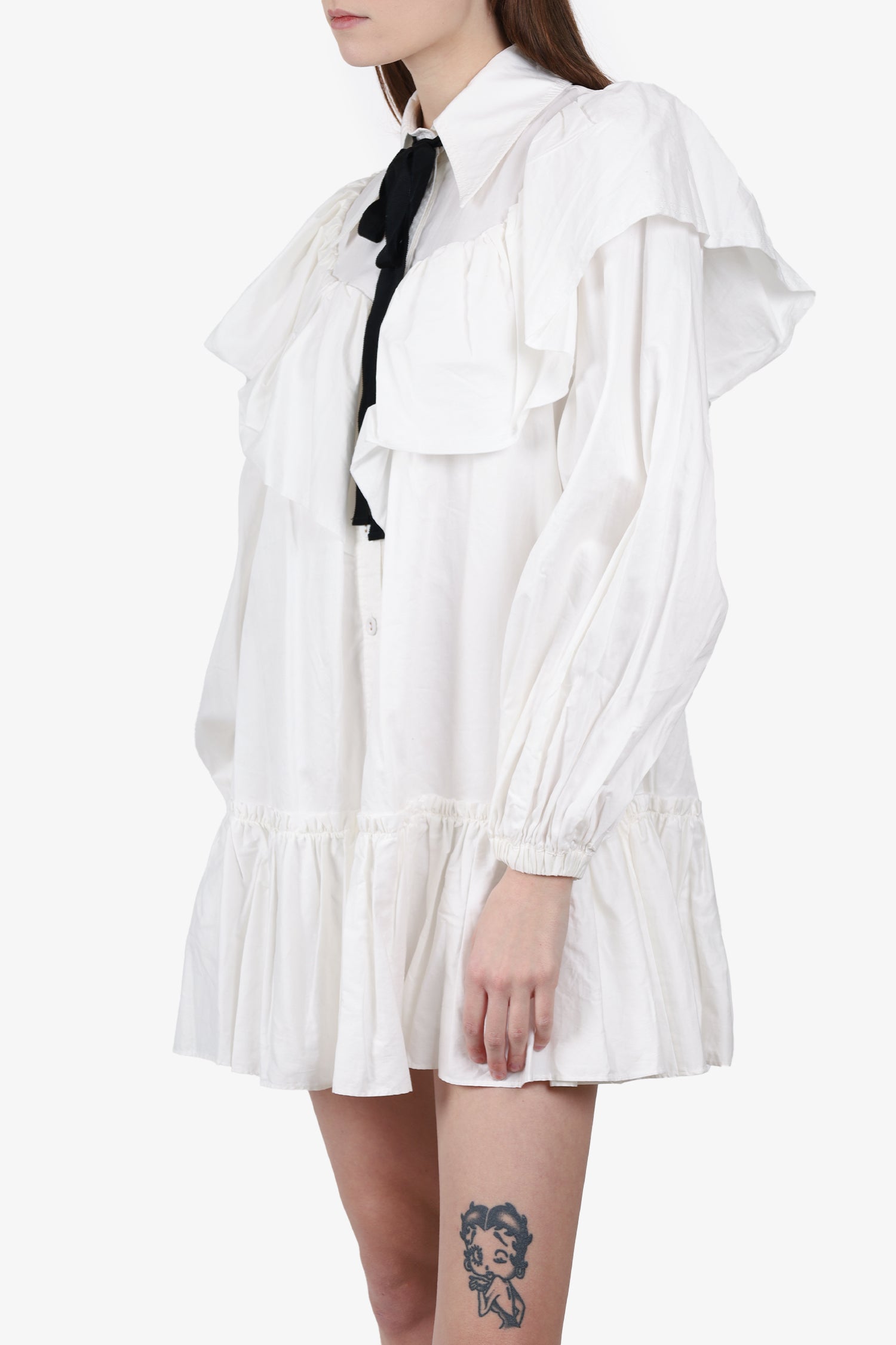 Refresh availabilityAje White/Black Marie Frill Bib Mini Dress. Front button closure. Tie detail. Long-sleeve. Tonal stitching.