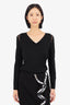 Akris Black Silk Ribbed Knit V-Neck Long-sleeve Sweater Size 12