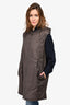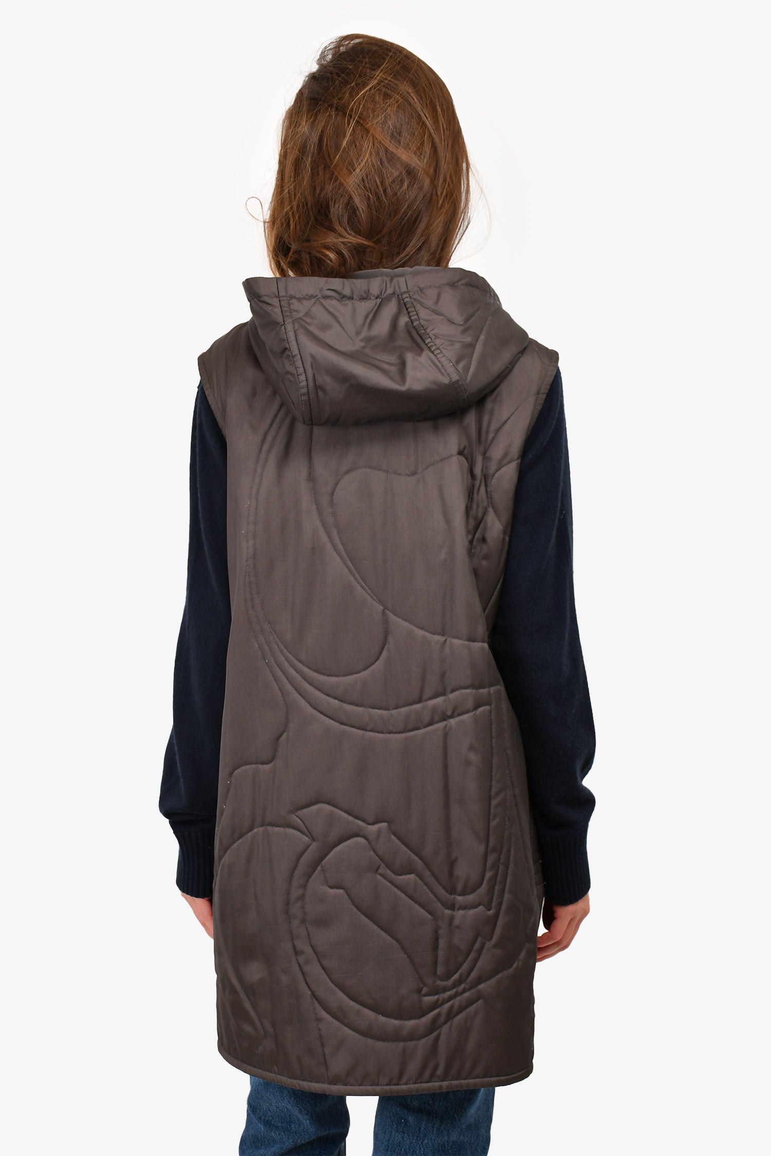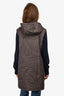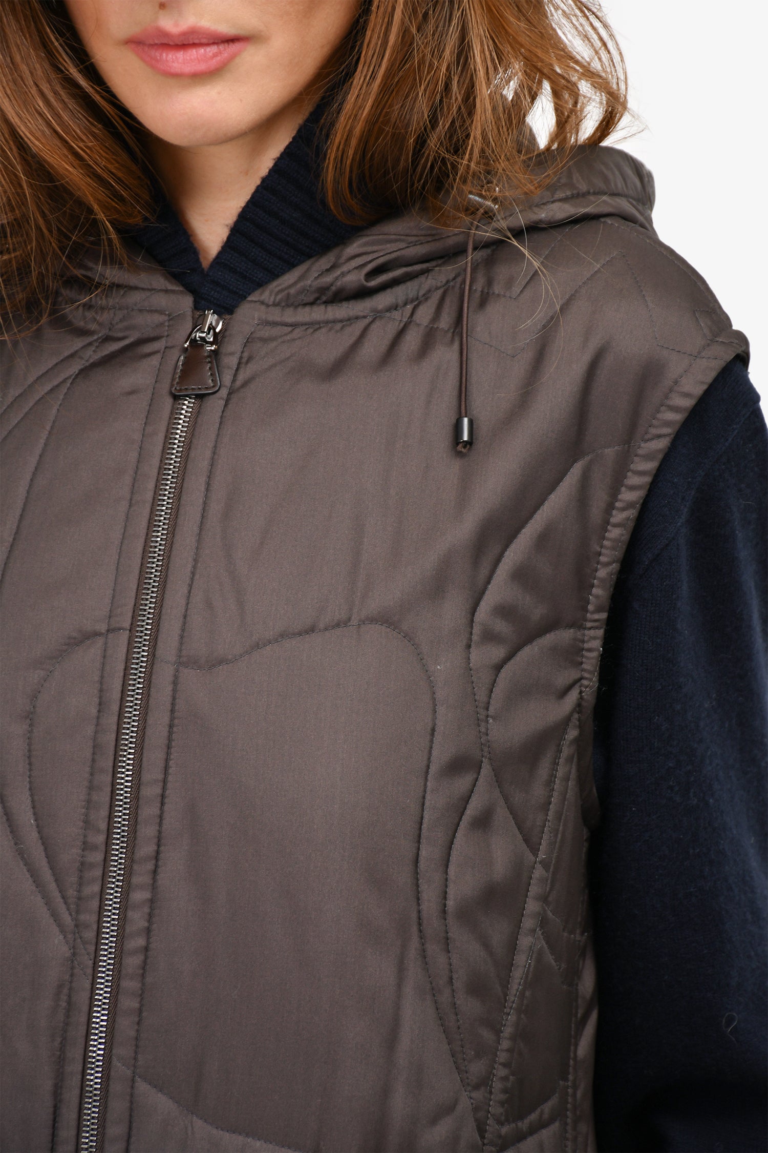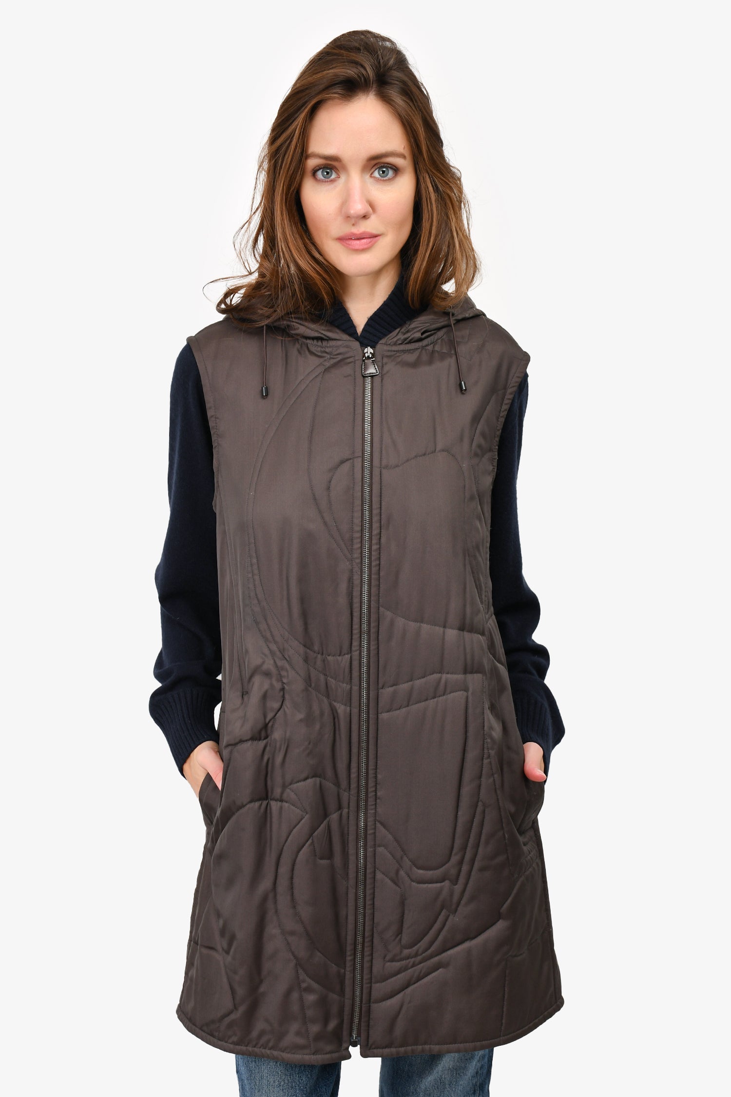Refresh availabilityAkris Brown Silk Long Hooded Vest. Tonal stitching. Front zipper closure.