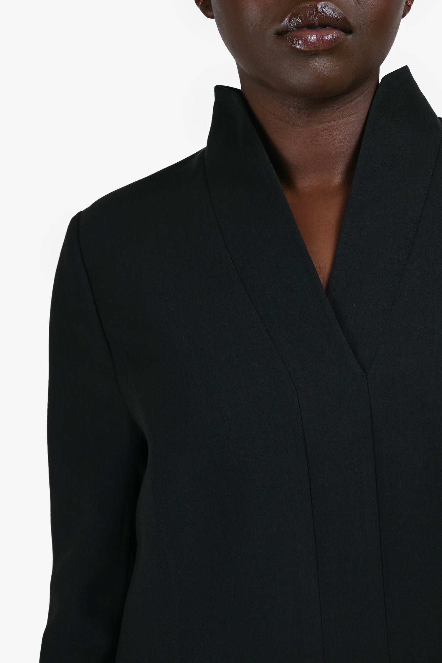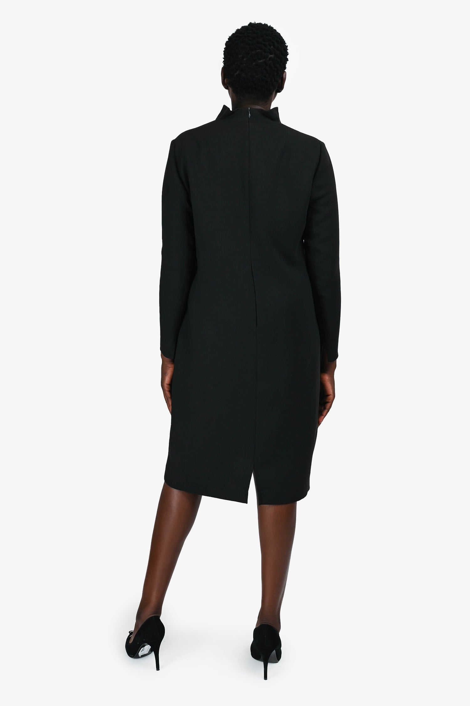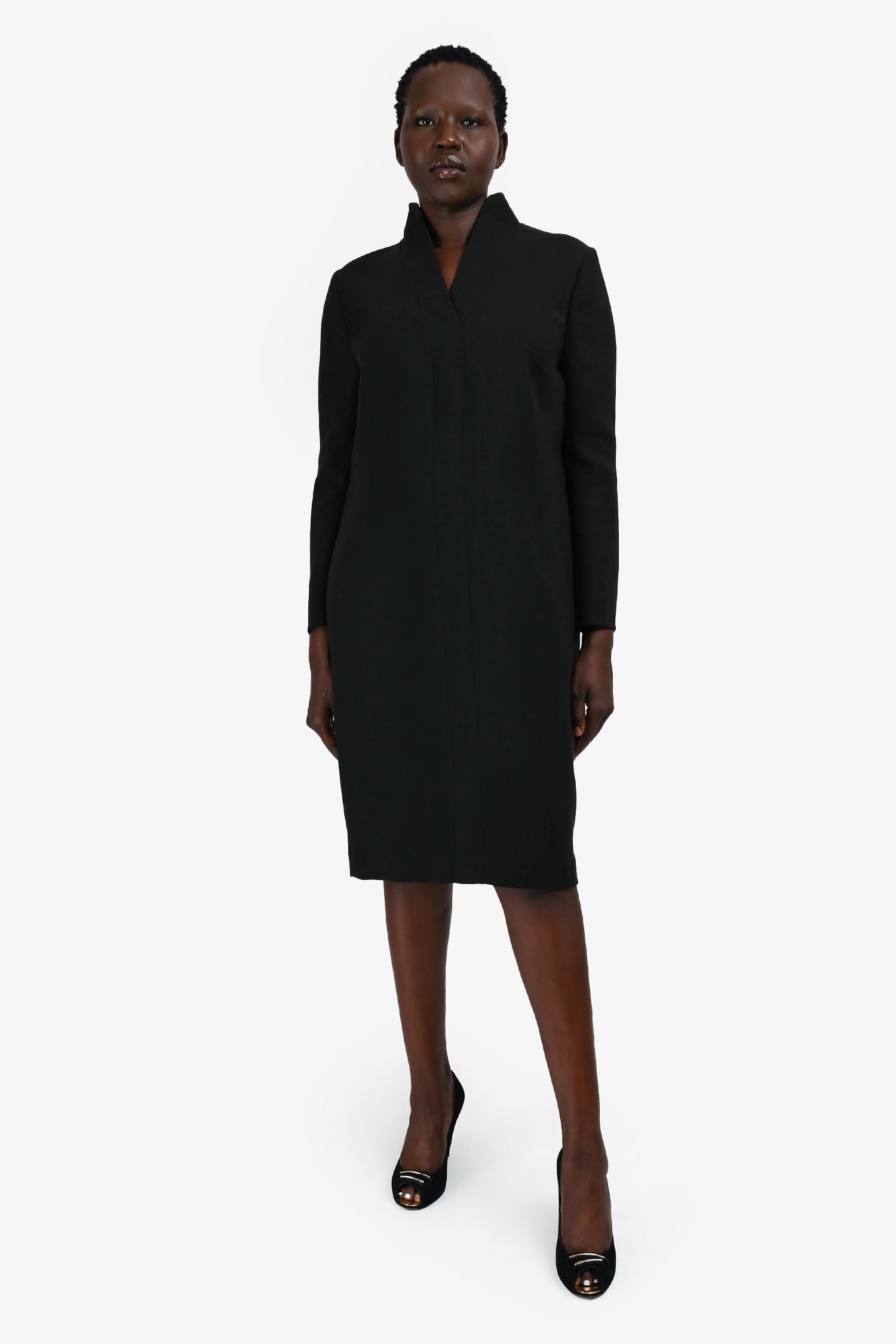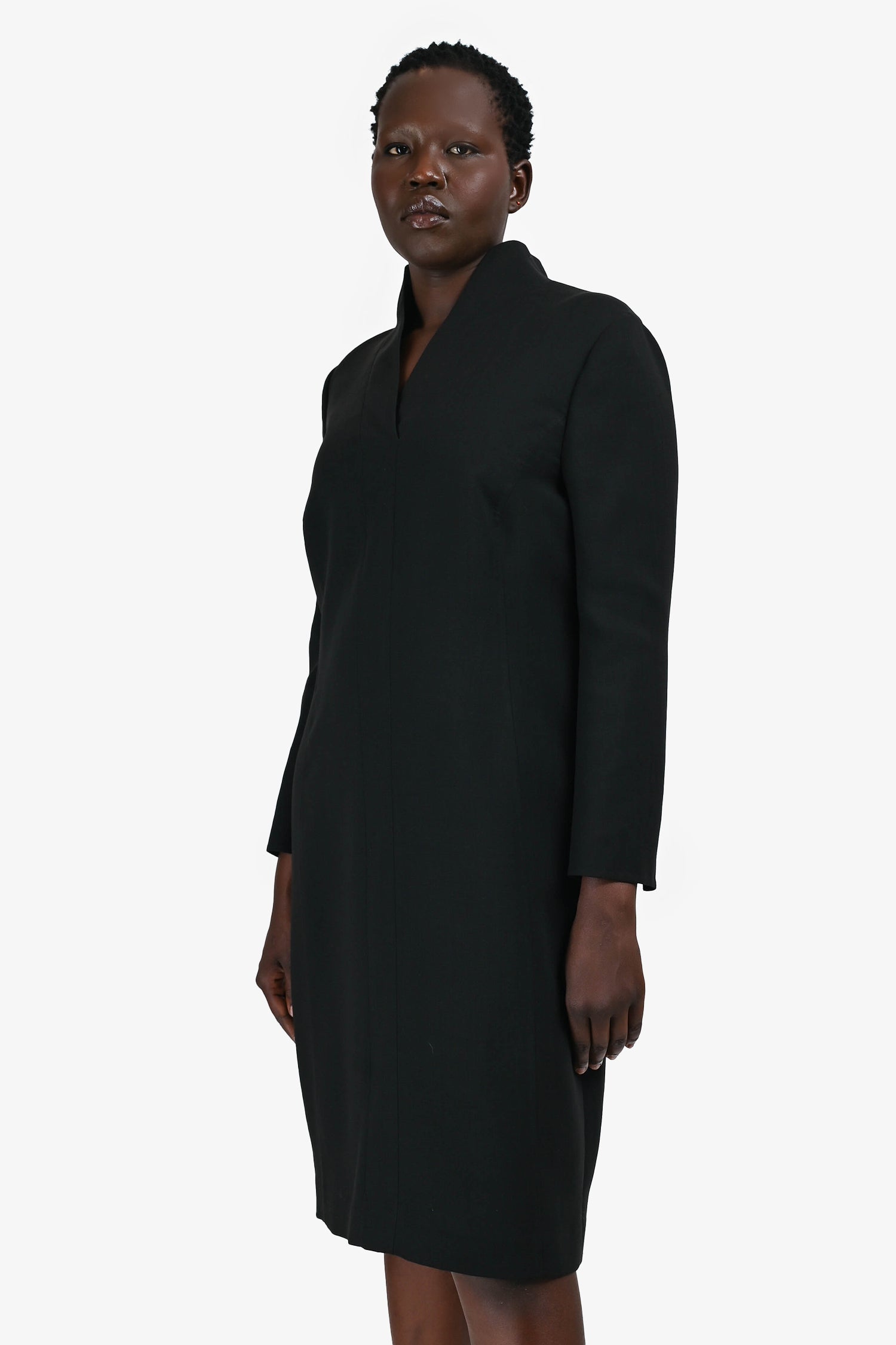 Akris Black V-Neck Long Sleeve Midi Dress Size 16