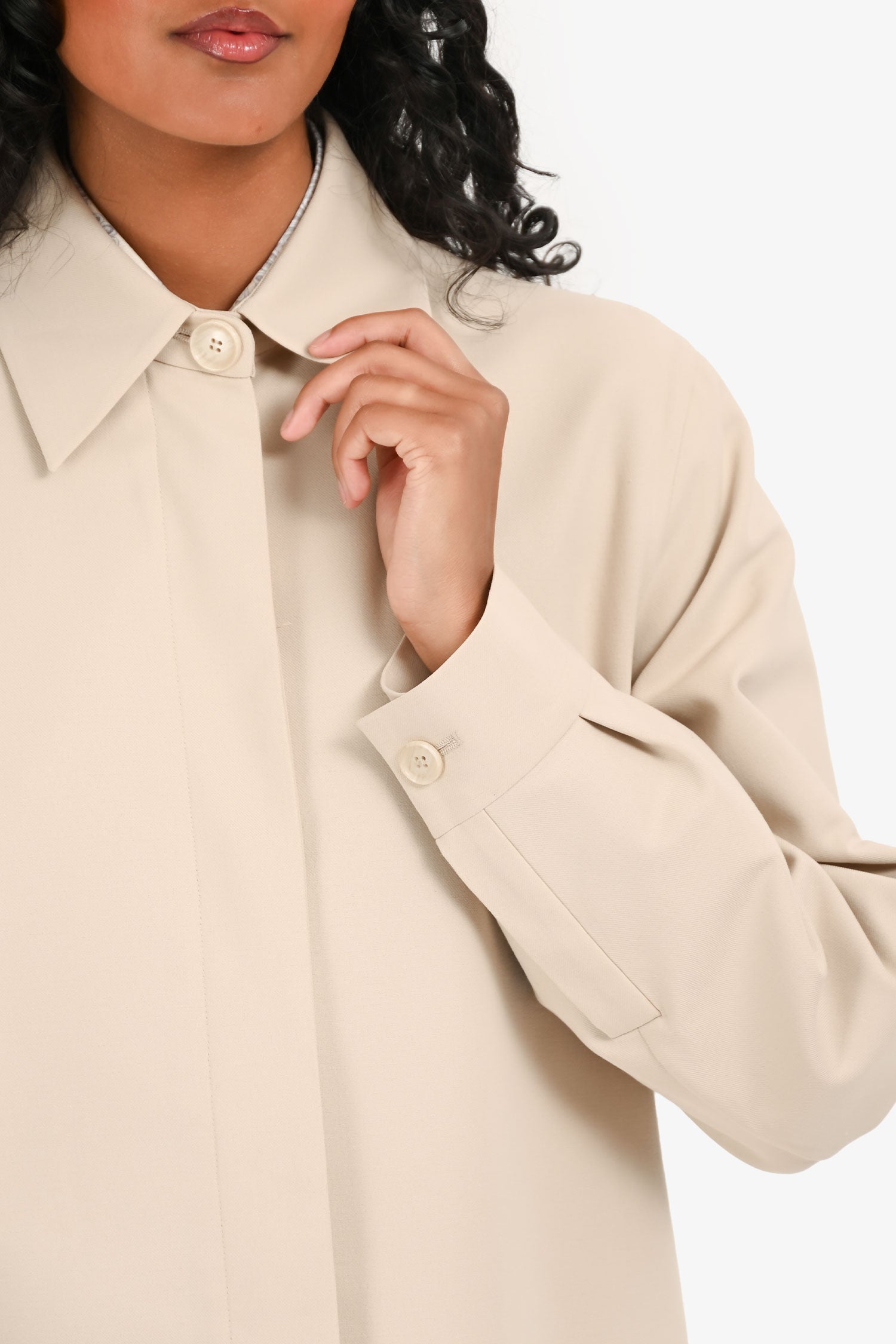 Refresh availabilityAkris Punto Beige Cotton Trench Coat. Front button closure. Long sleeves. Side seam pockets. Tonal stitching.