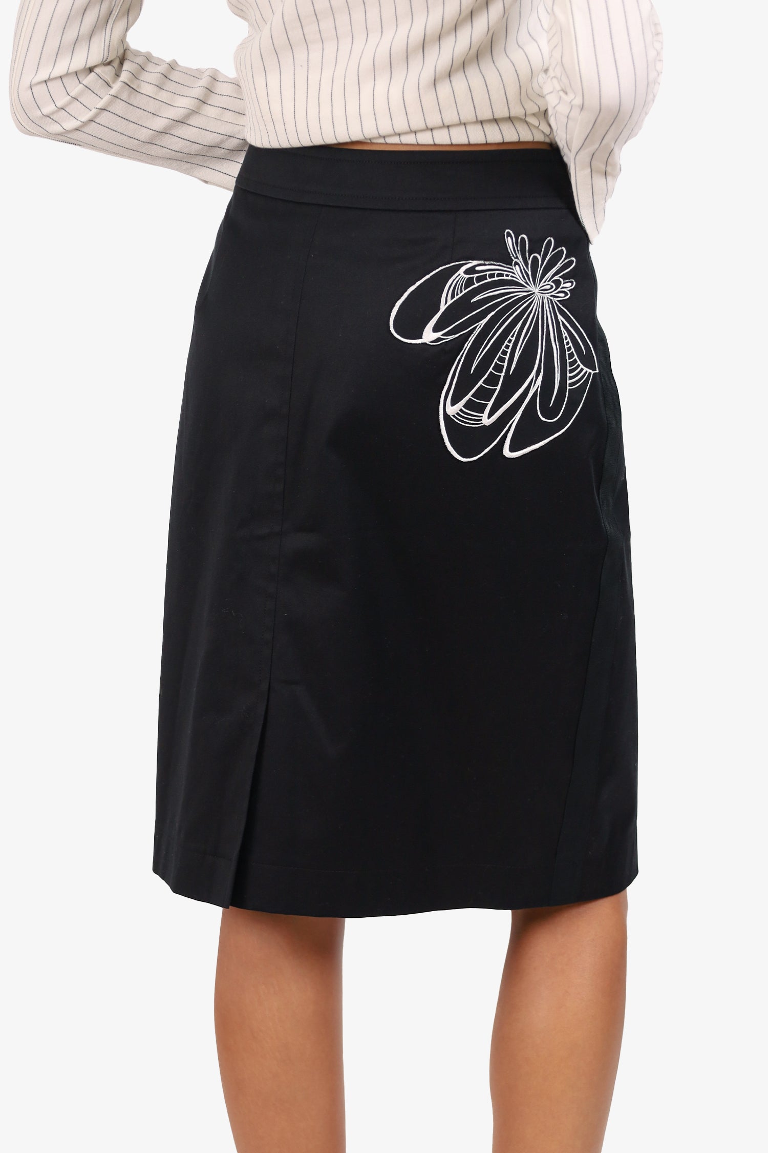 Akris Punto Black Floral Emboridery Midi Skirt Size 10