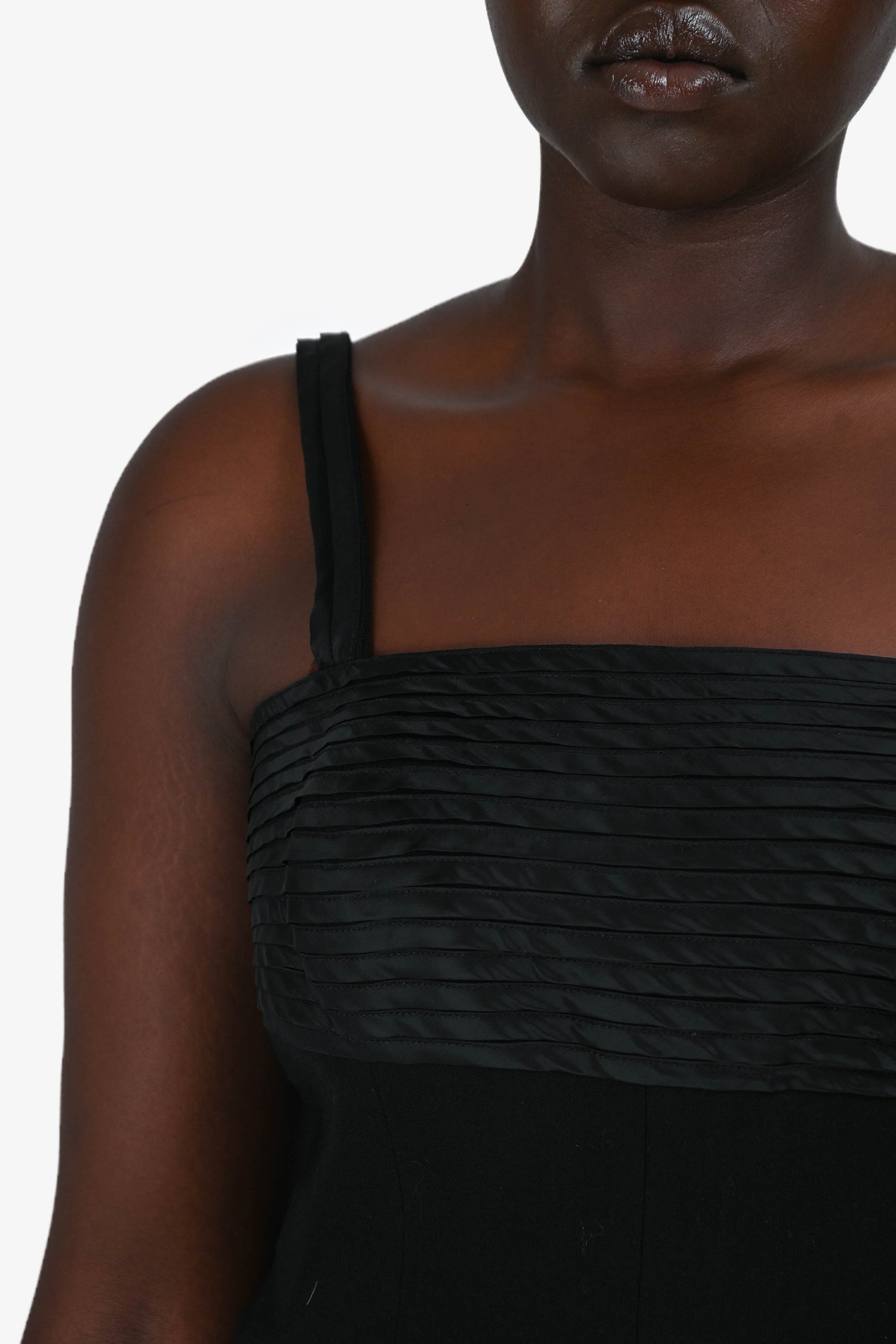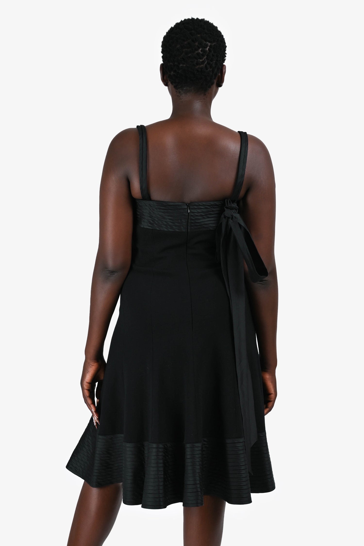 Refresh availabilityAkris Punto Black Sleeveless Midi Dress with Waist Tie. Square neckline. Tonal detachable waist tie. Concealed back zip closure. Fully lined. Tonal stitching.