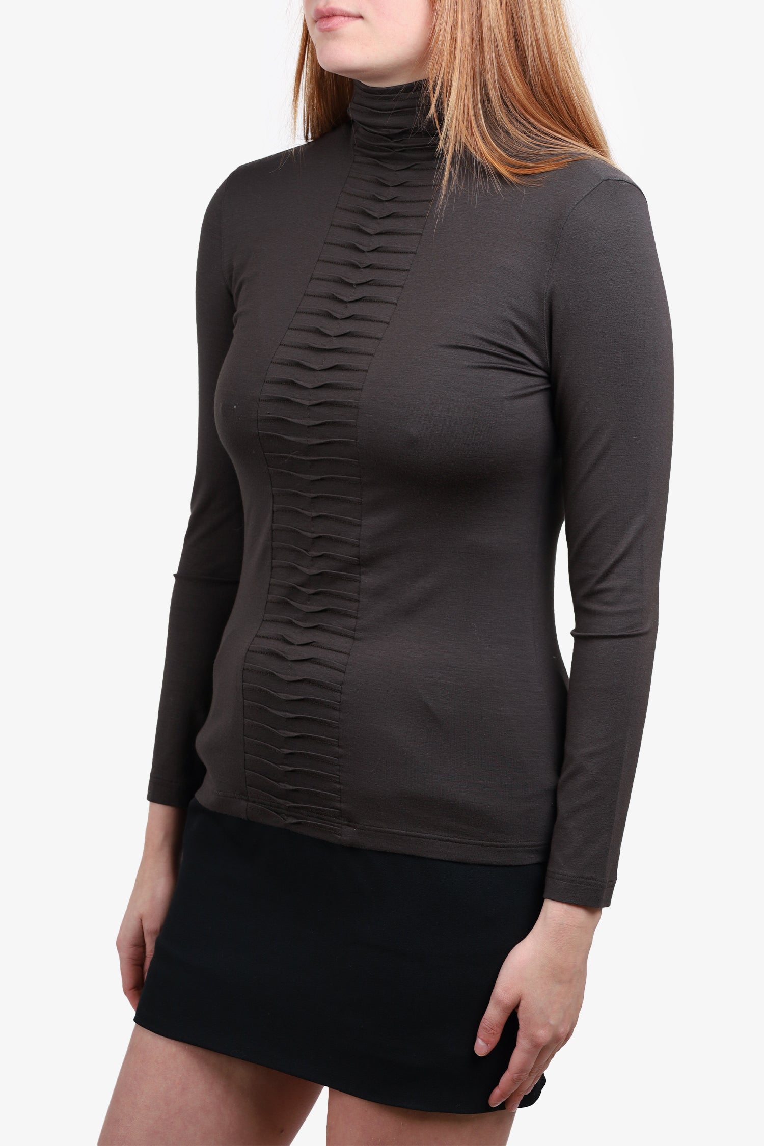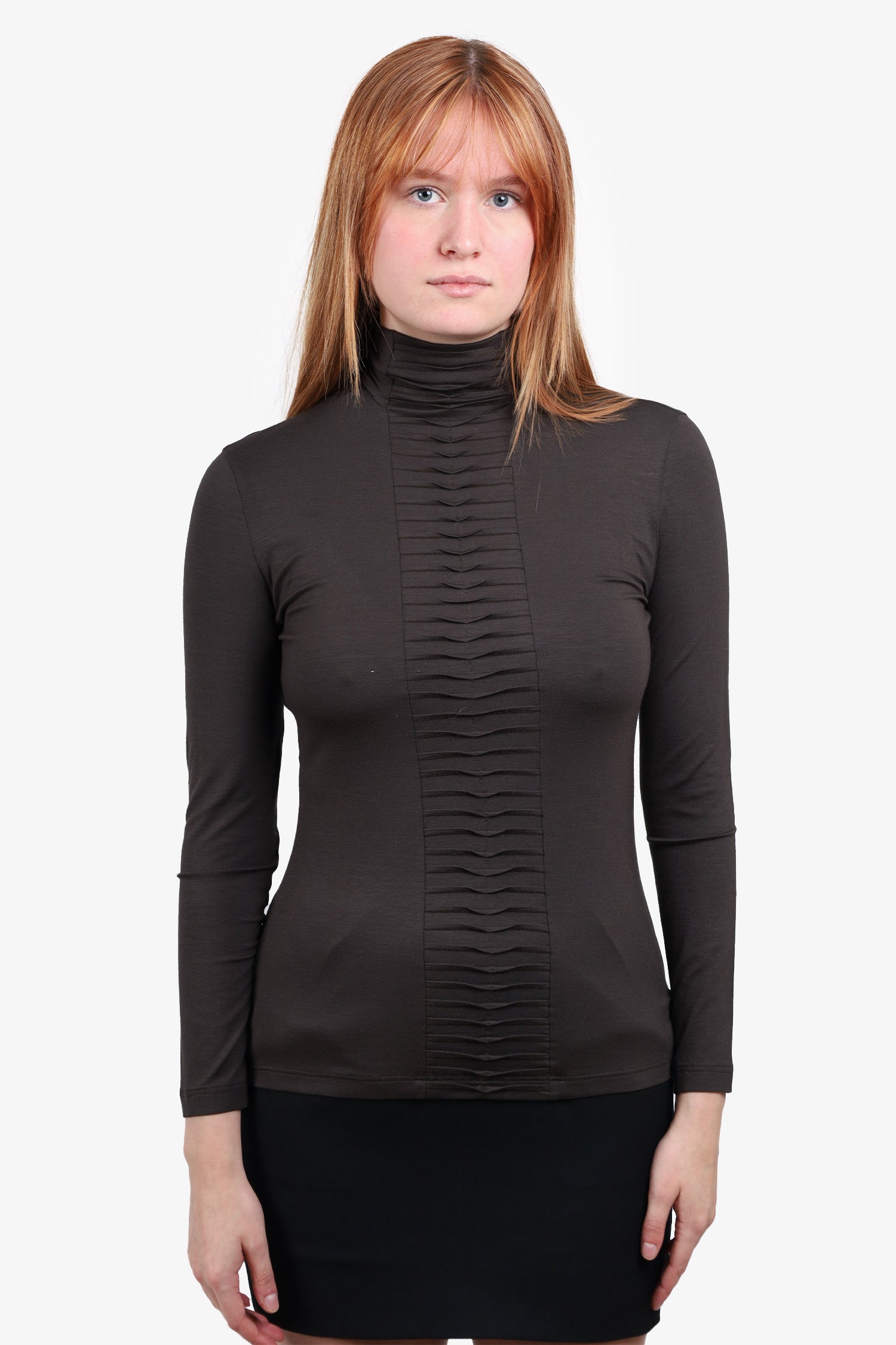 Akris Punto Brown Long-Sleeve Mockneck with Front Detail size 8