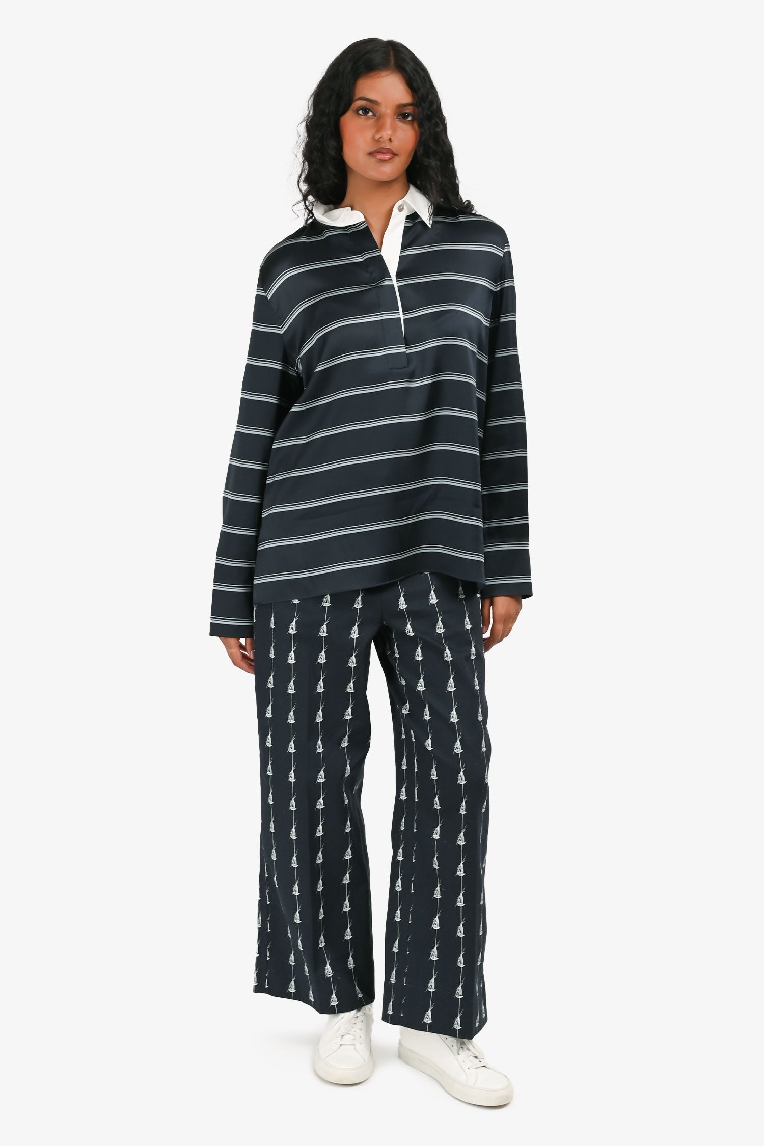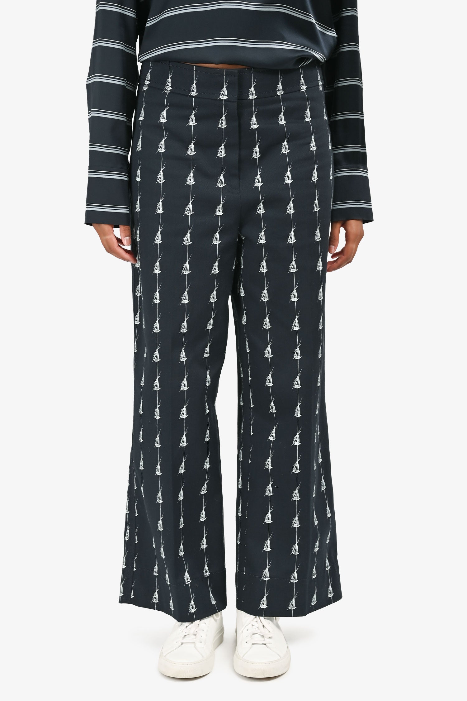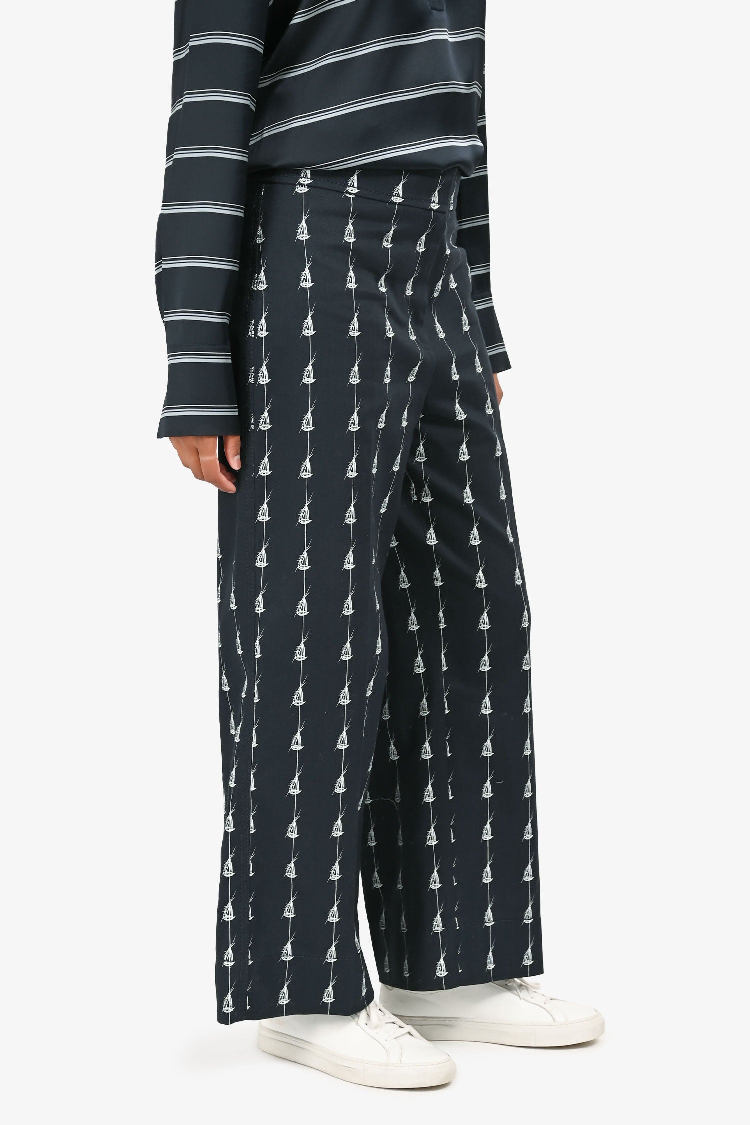 Akris Punto Navy Blue/White Sailboat Printed Pants Size 6 US
