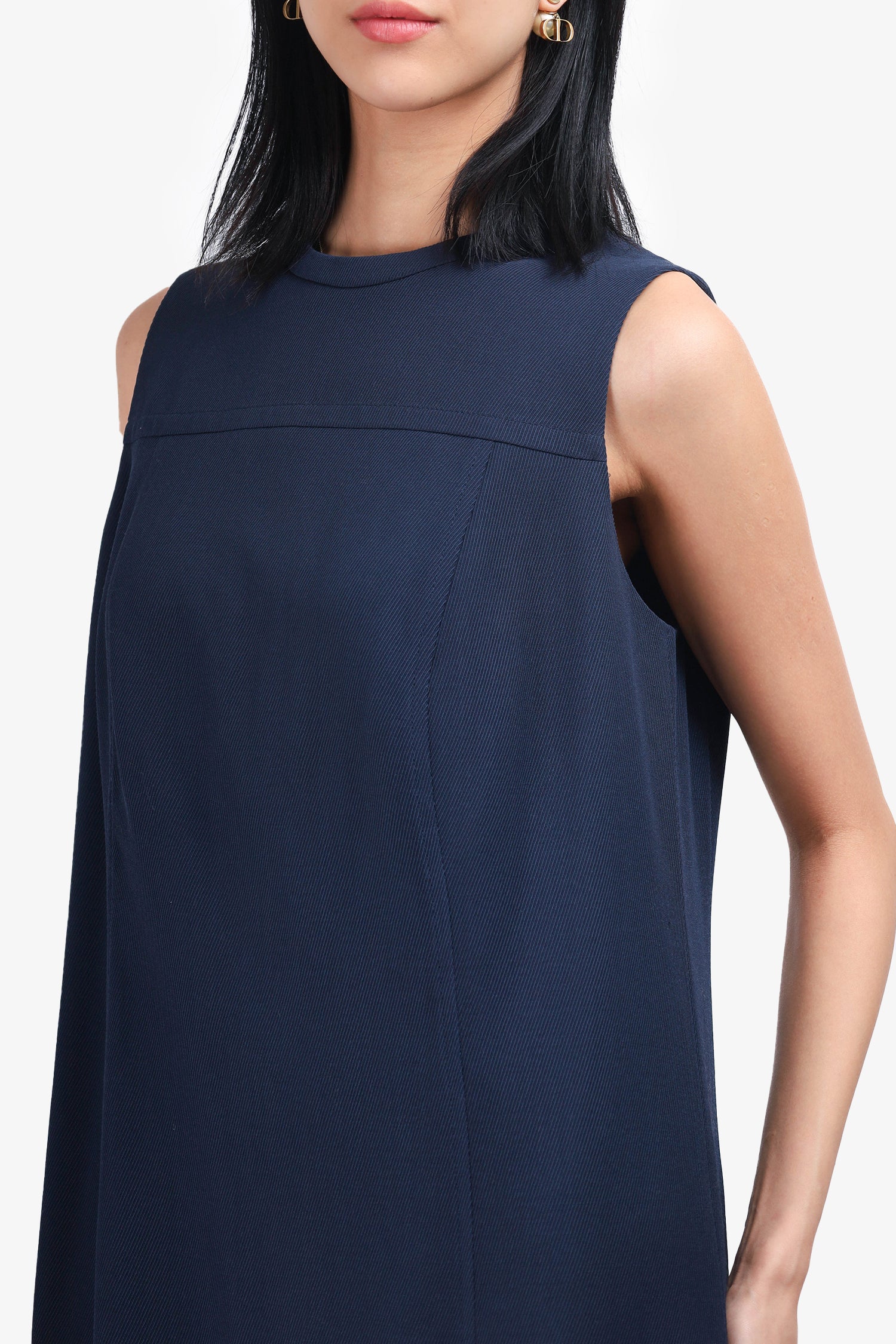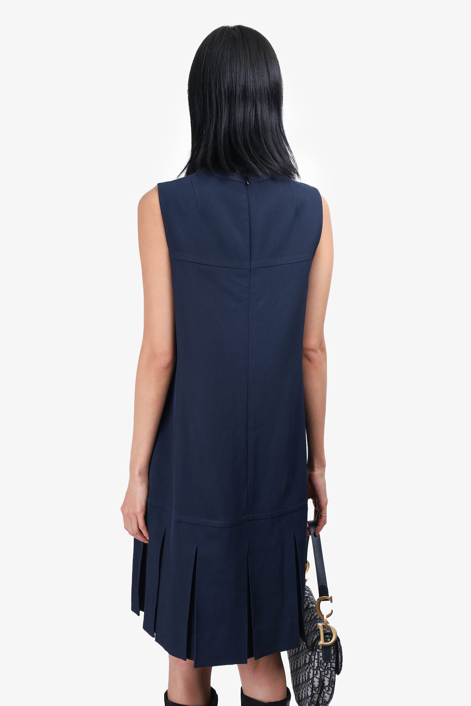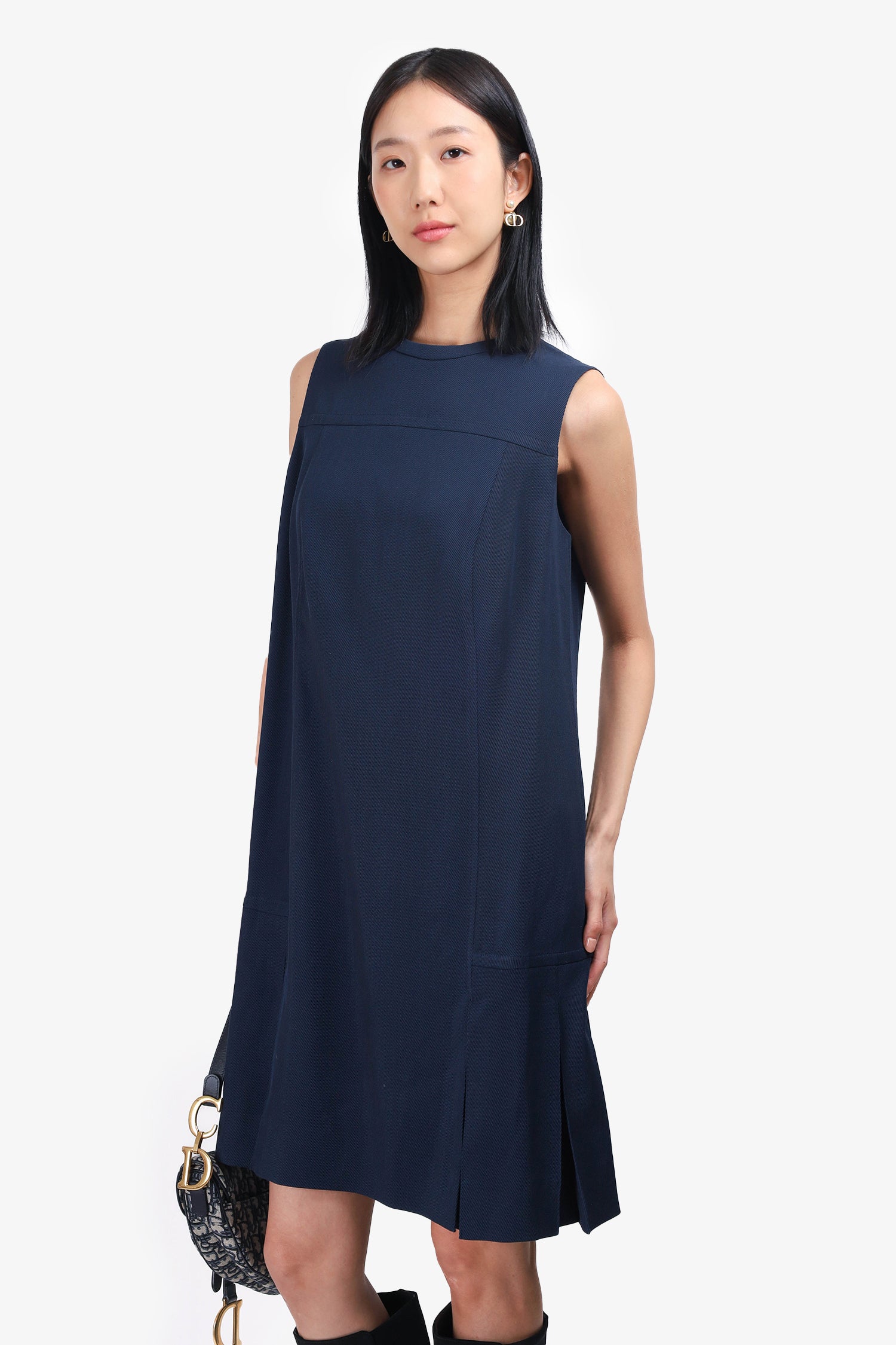 Refresh availabilityAkris Punto Navy Wool Sleeveless Dress. Round neckline. Rear zip closure. Pleated rear bottom hem. Tonal stitching.