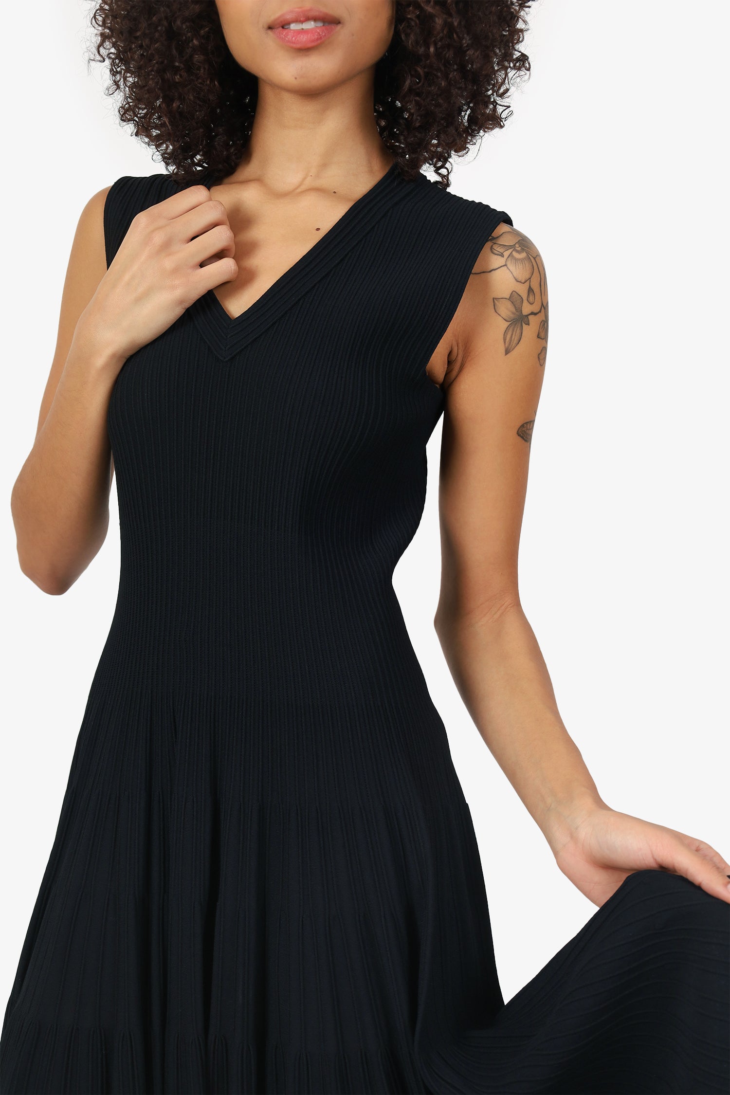 Refresh availabilityAlaïa Black Knit Accordion Pleat Detail Sleeveless Dress. Slip-on. V-neckline. Rear zip and hook closures. Tonal stitching.