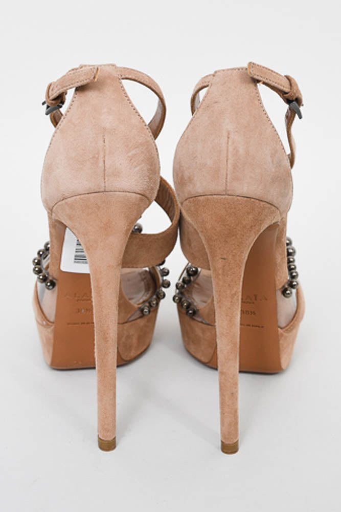 Alaïa Nude Suede Platform Heels with Studded Band Size 38.5