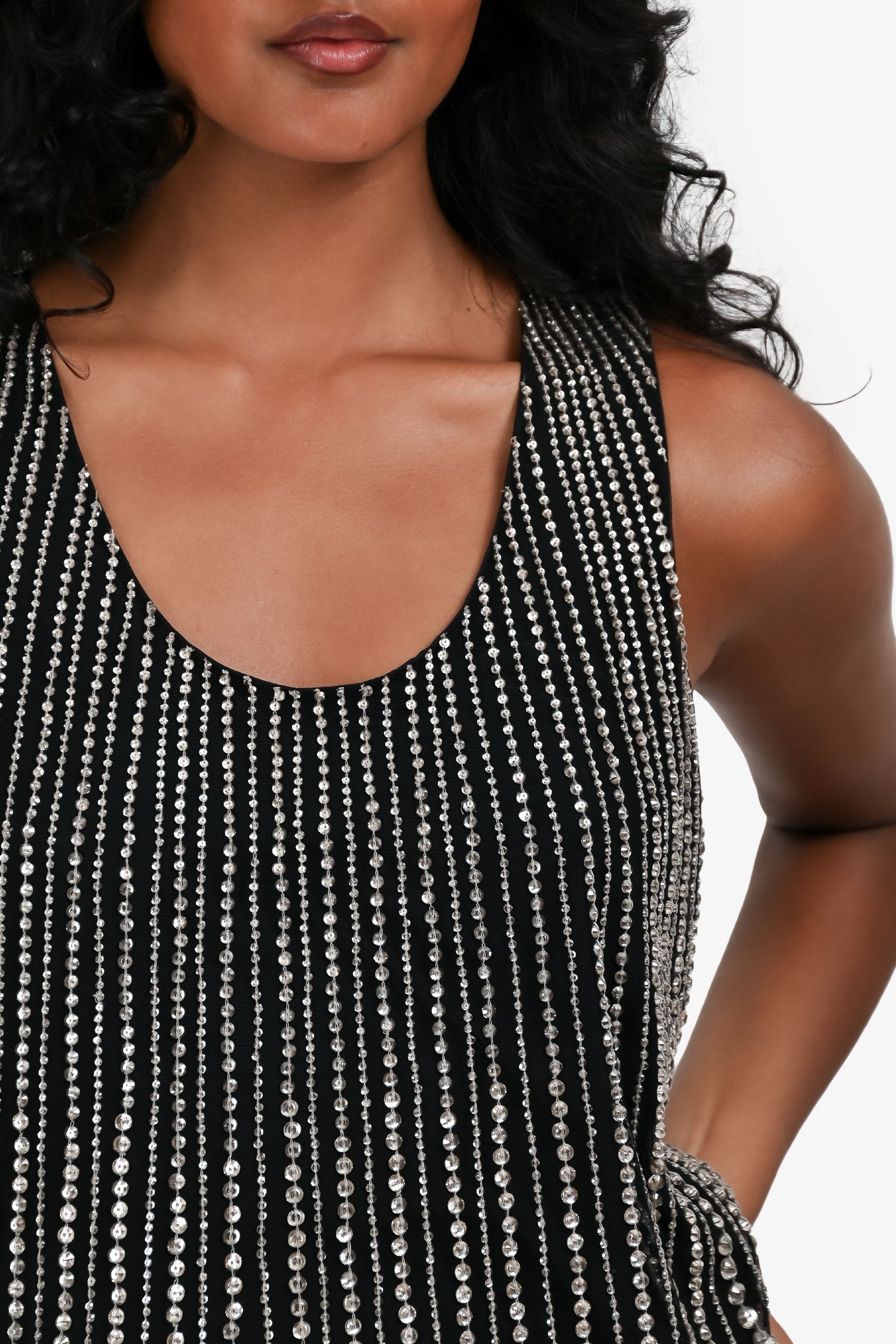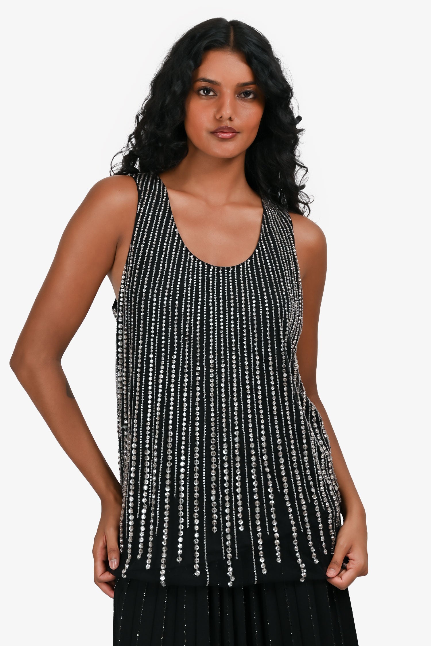 Refresh availabilityAlberta Ferretti Black Sequin Embellished Tank Top. Scoop neckline. Sleeveless. Allover sequin embellishments. Pull-on style. Tonal stitching.