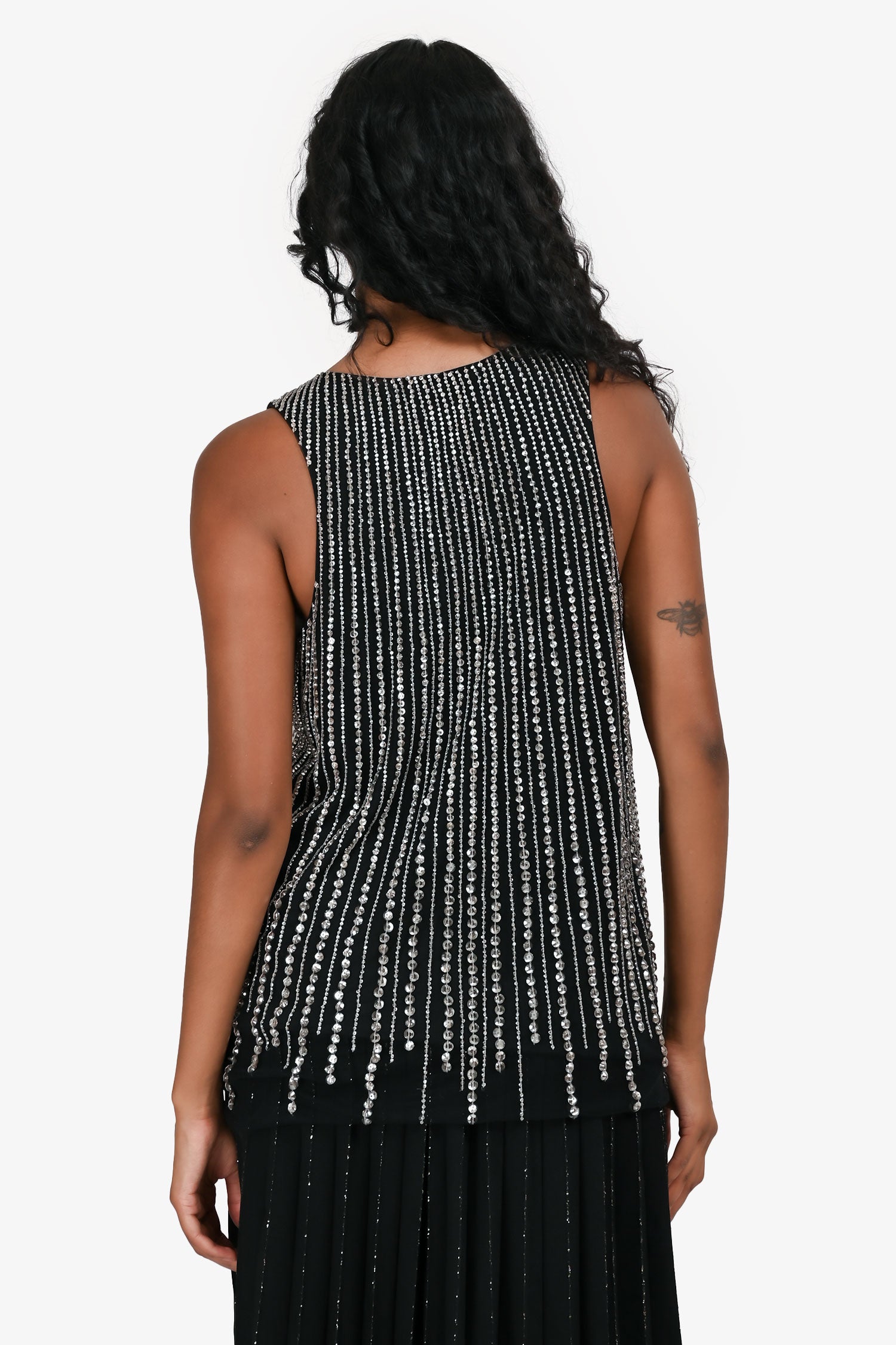 Alberta Ferretti Black Sequin Embellished Tank Top Size 4