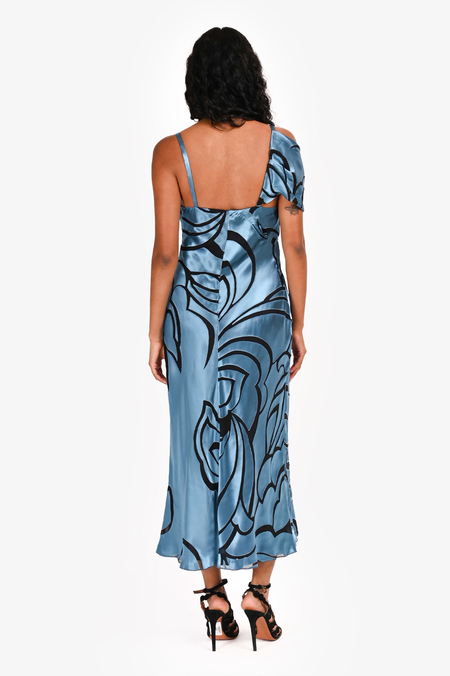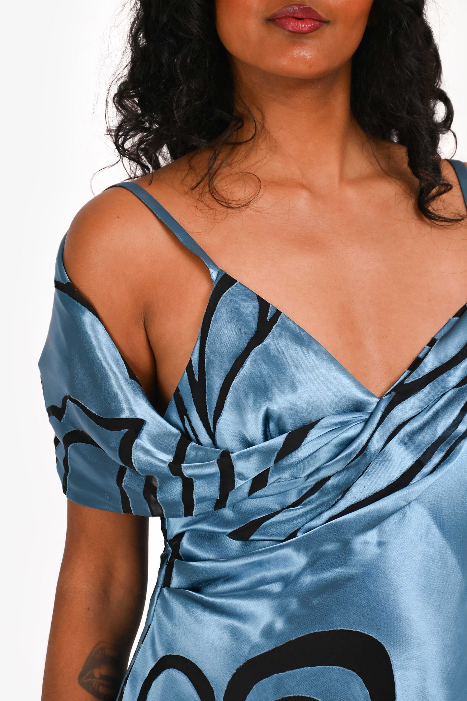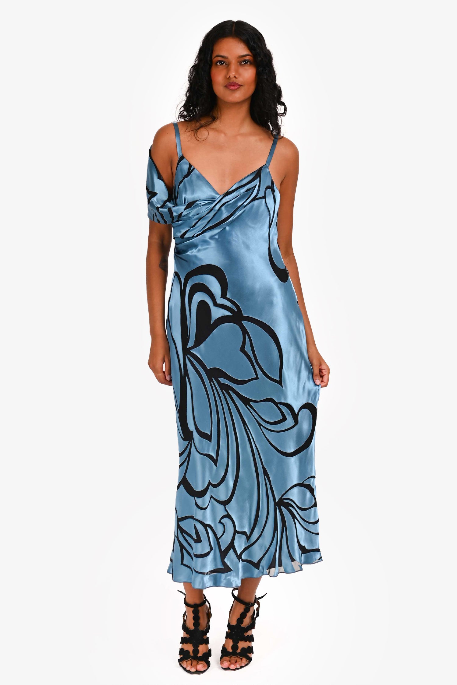 Refresh availabilityAlberta Ferretti Blue/Black Silk Sleeveless Maxi Dress. V-neckline. Sleeveless. Concealed side zip closure. Fully lined. Tonal stitching.