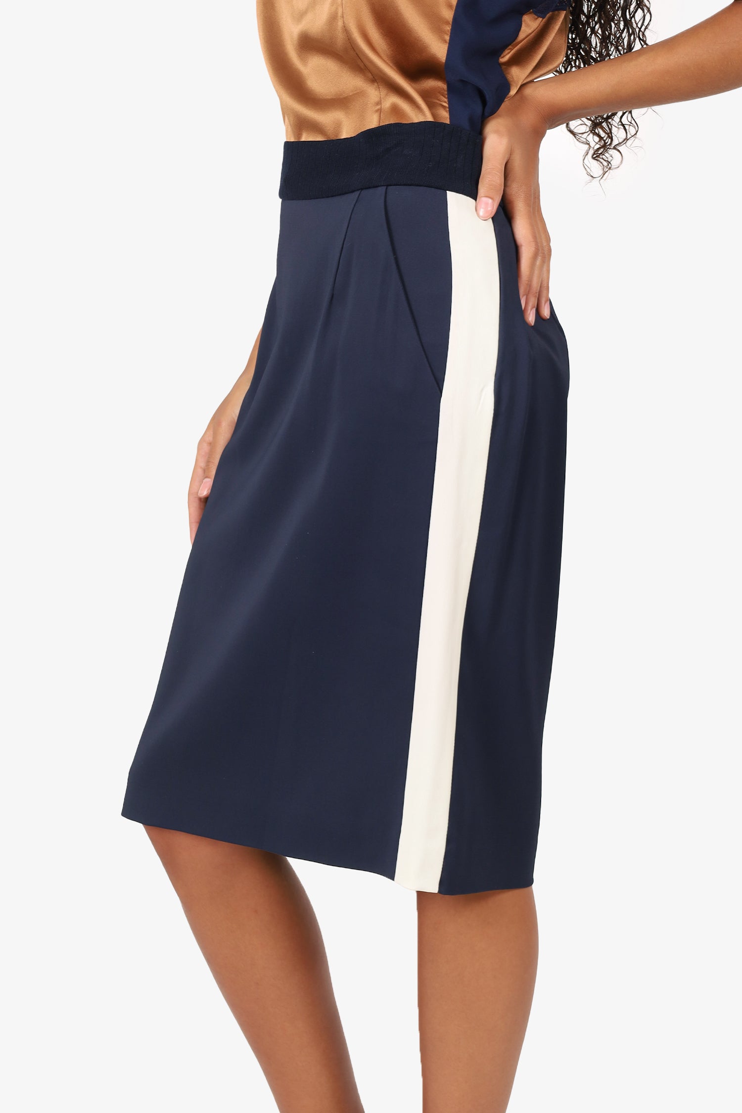 Refresh availabilityAlberta Ferretti Navy/White Side Panel Skirt. Slip-on. Elasticated waistband. Side zip closure. Lined interior. Tonal stitching.