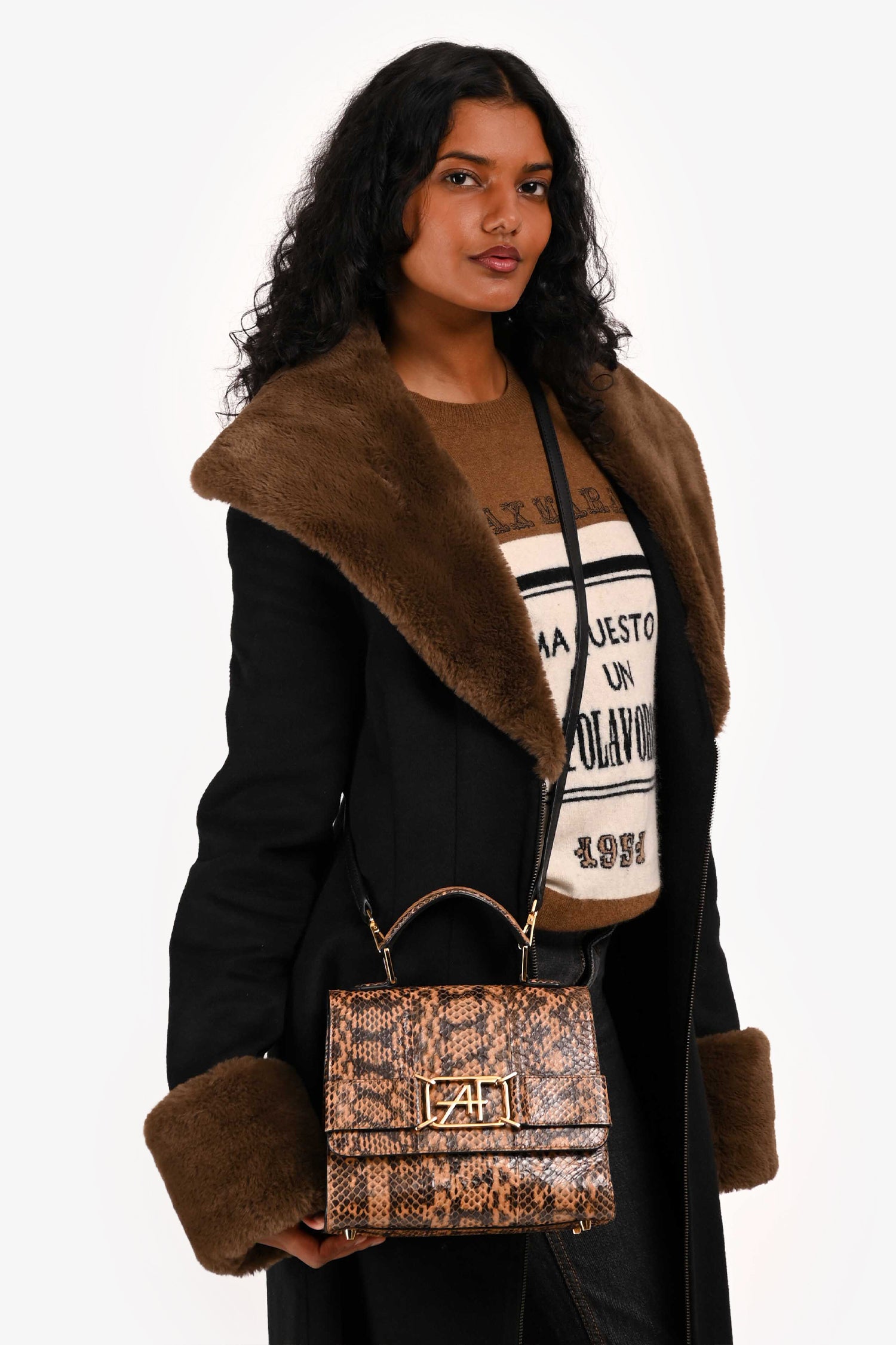 Alberta Ferretti Orange/Brown Snakeskin Top Handle Bag