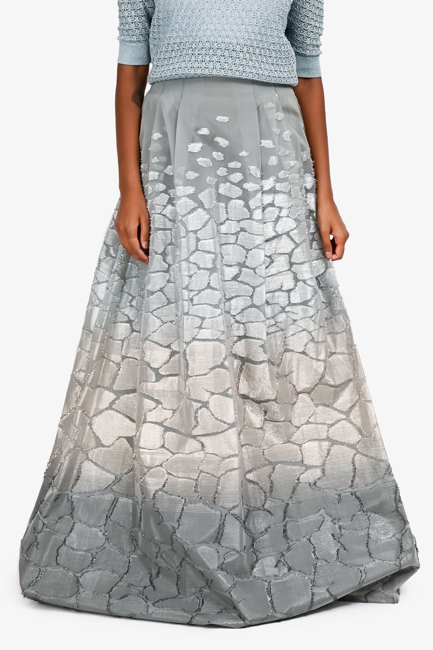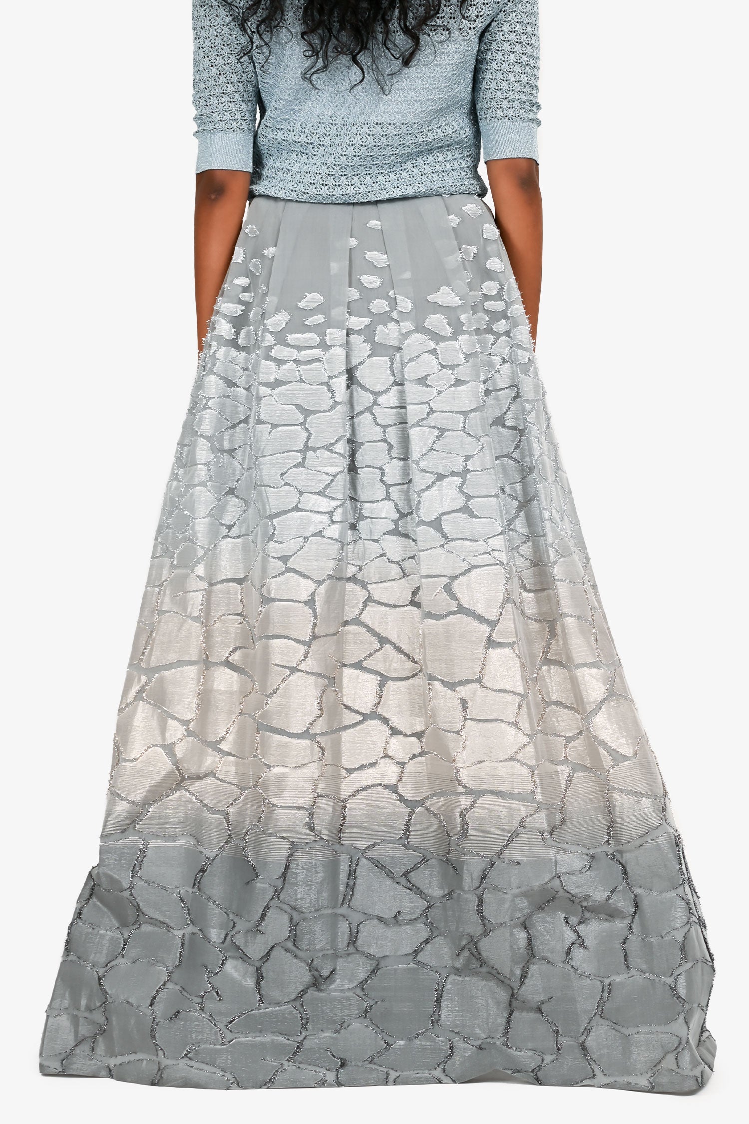 Refresh availabilityAlberta Ferretti Silver Tinsel Maxi Skirt. Side zip closure. Fully lined. Tonal stitching.