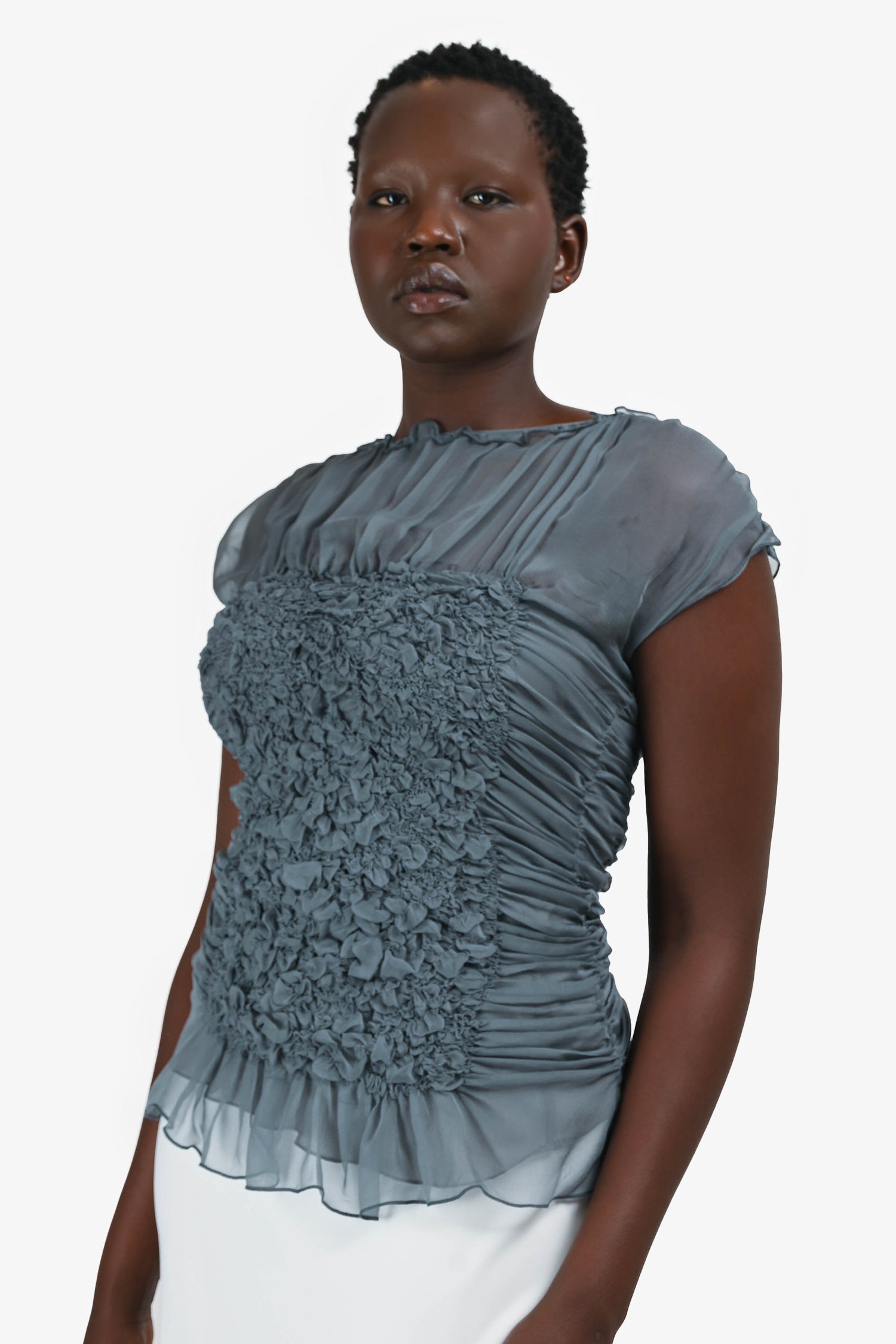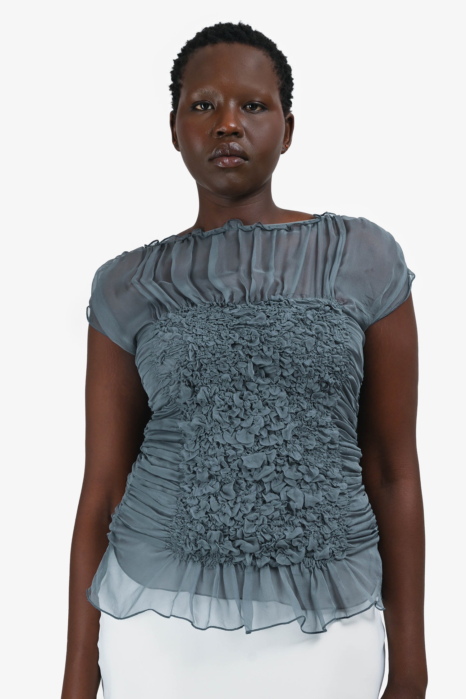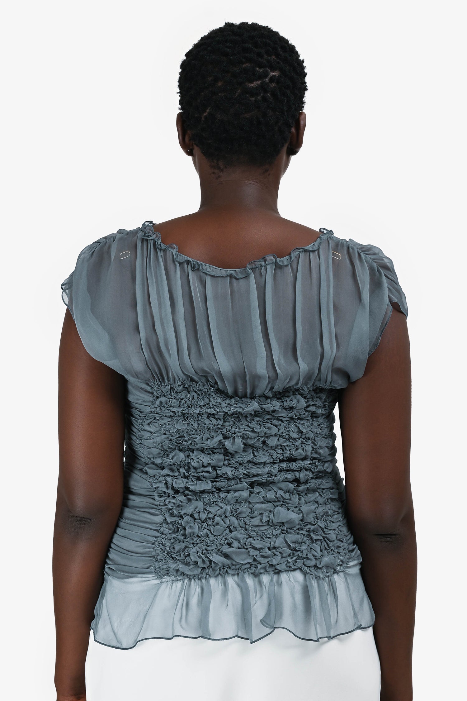 Alberta Ferretti Teal Silk Sleeveless Top Size 8